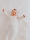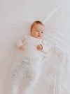 Cozy, fluffy, and dainty coming home blanket, beautiful photo prop, and timeless family heirloom.