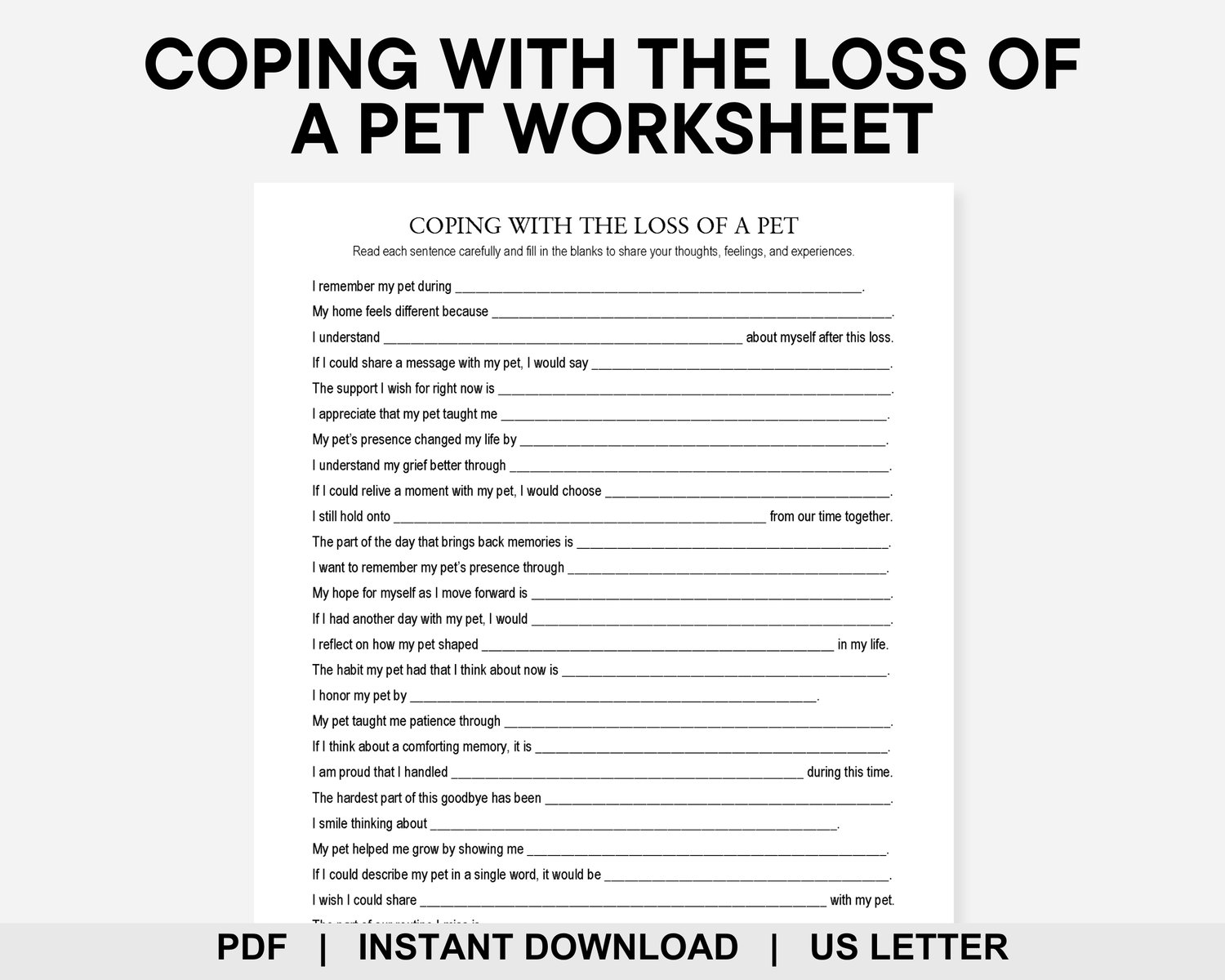 Coping With the Loss of a Pet Worksheet, Pet Loss, Pet Sympathy, Pet Memorial, Grief and Loss, Rainbow Bridge, Bereavement, Memory Keepsake