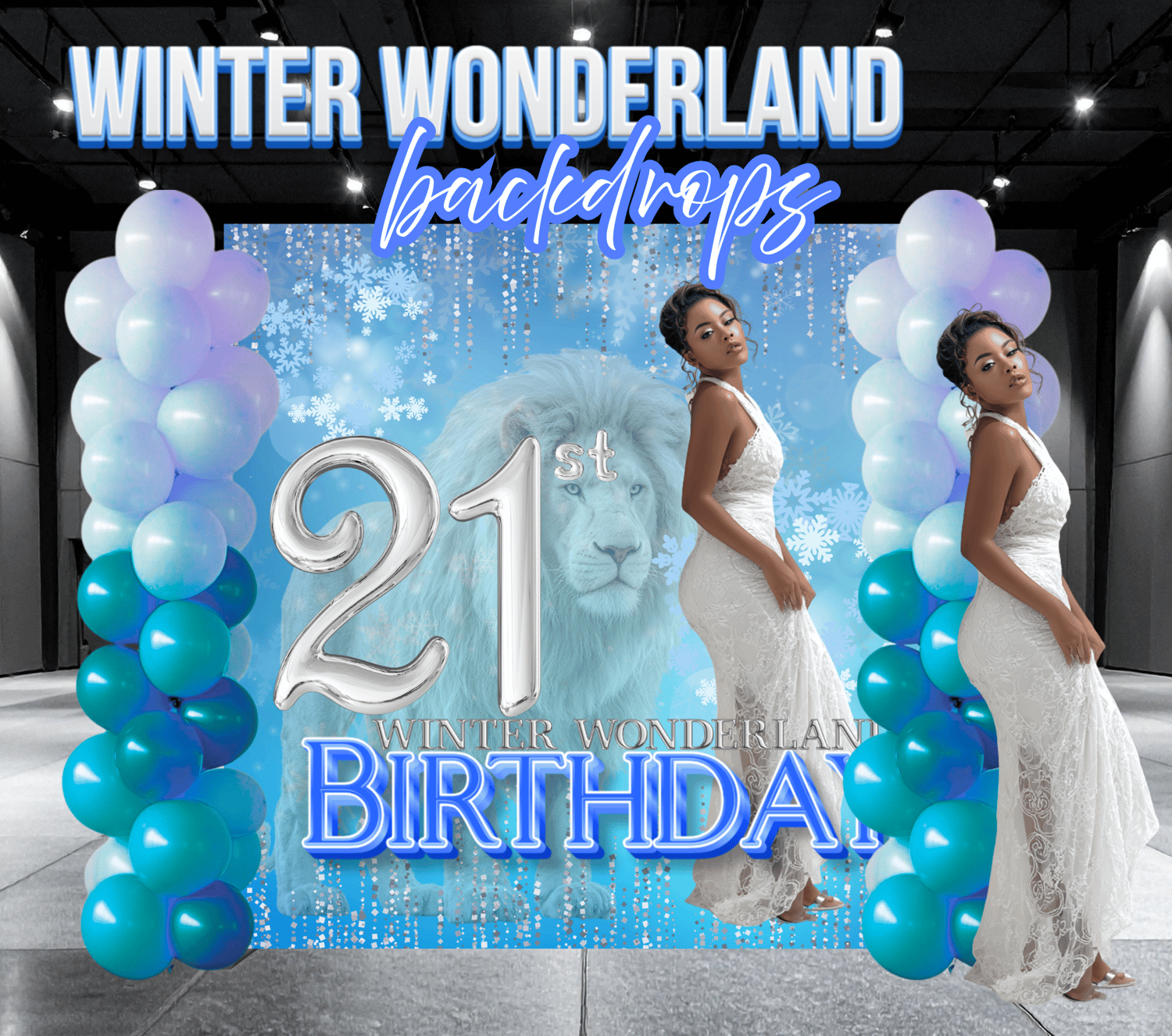 Winter Wonderland parties, 21st birthdays, milestone events, photoshoots, or luxury winter-themed decor.