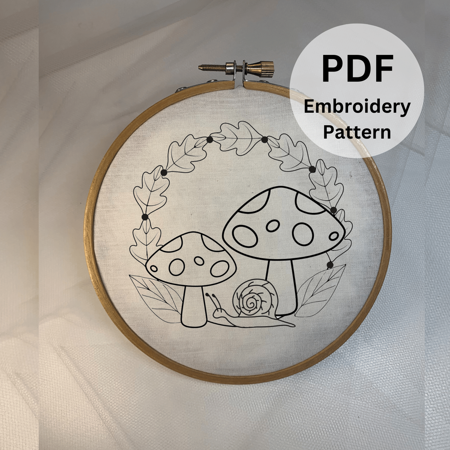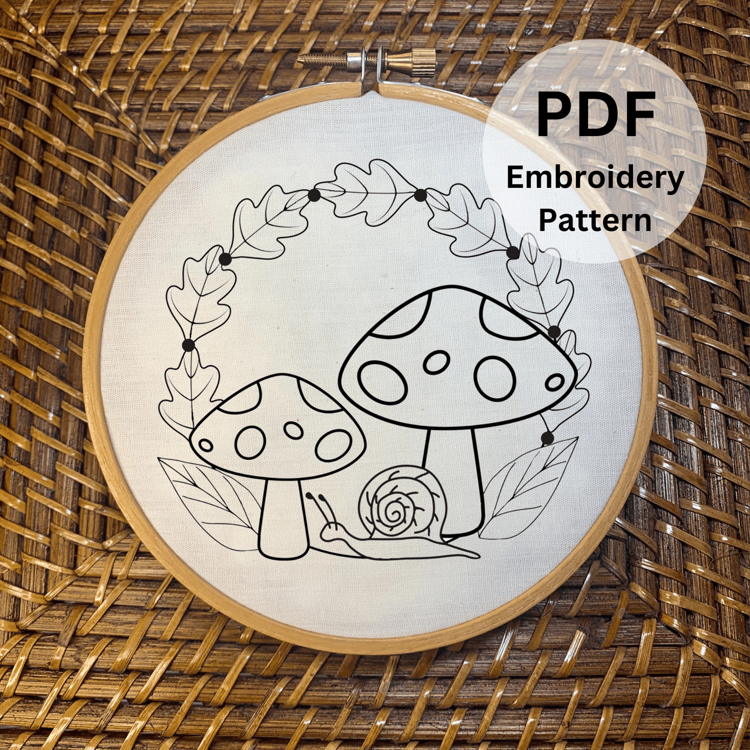 Mystical Mushrooms and Snail Wreath Hand Embroidery Pattern - Unleash Your Creativity!
