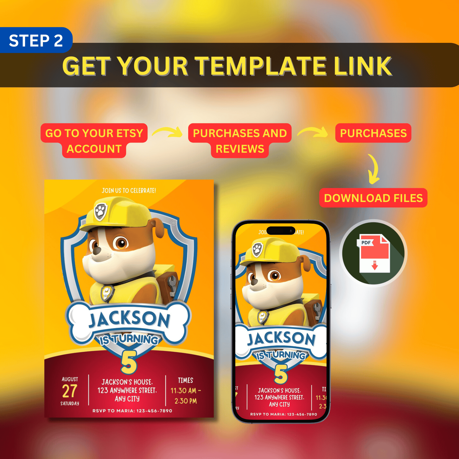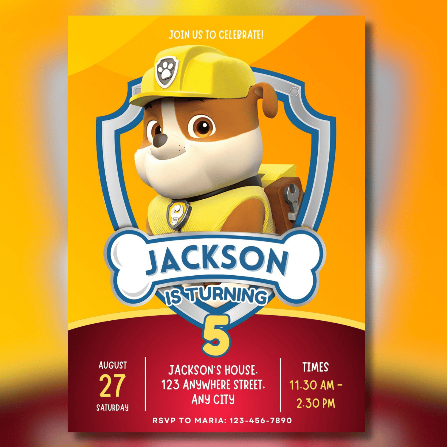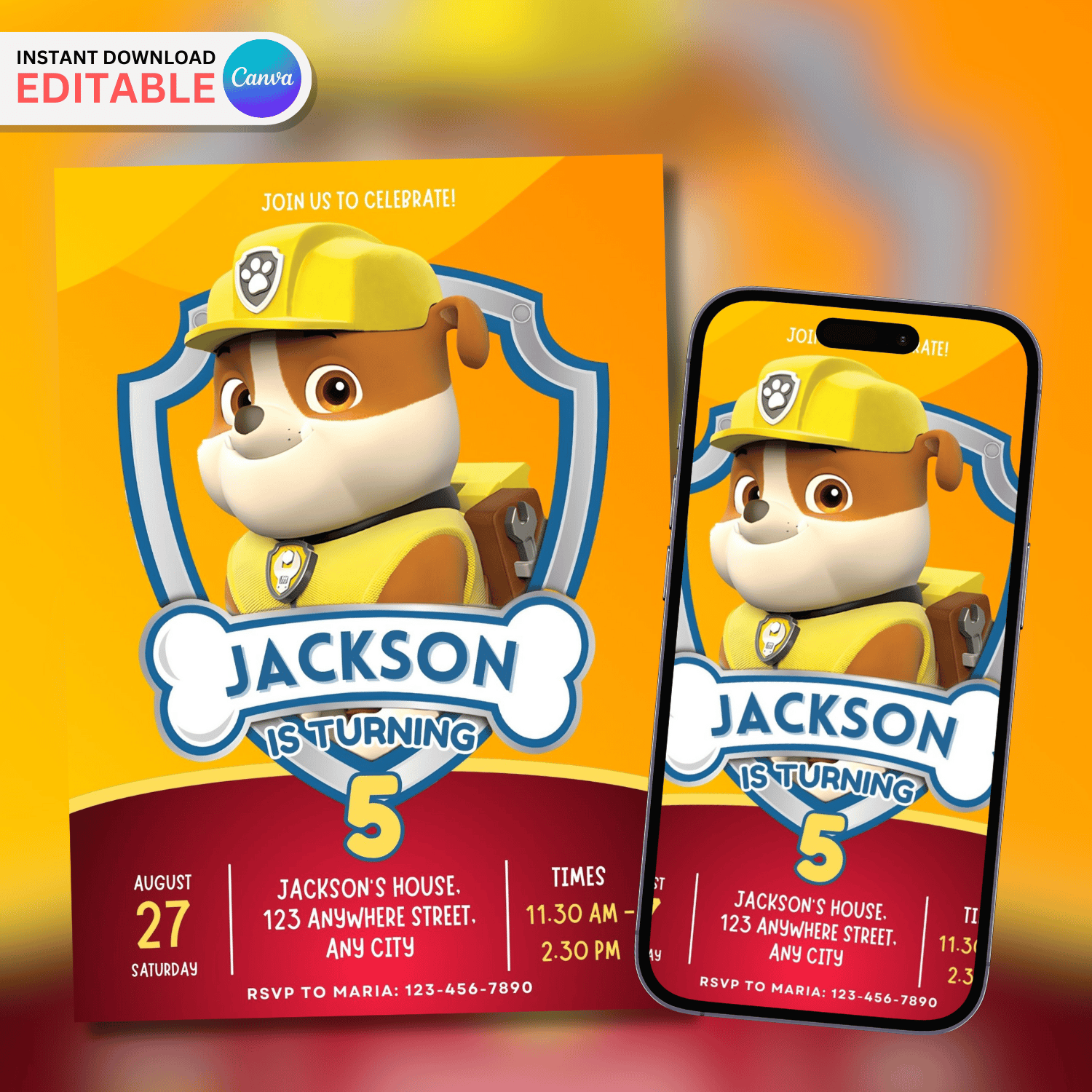 Rubble Birthday Invitation, Rubble Invitation, Rubble Birthday Party Themed Card, Mobile Digital Invitation, Kids Birthday Invitation 5x7
