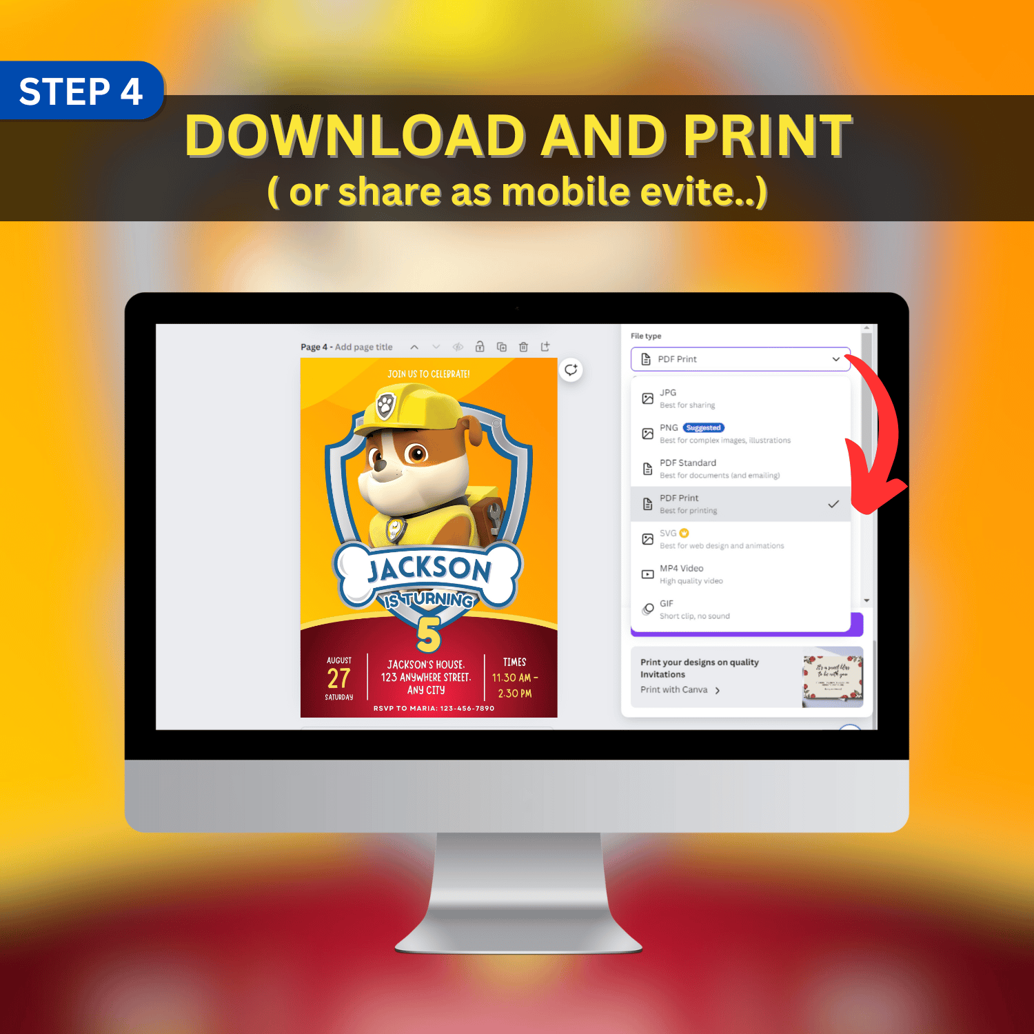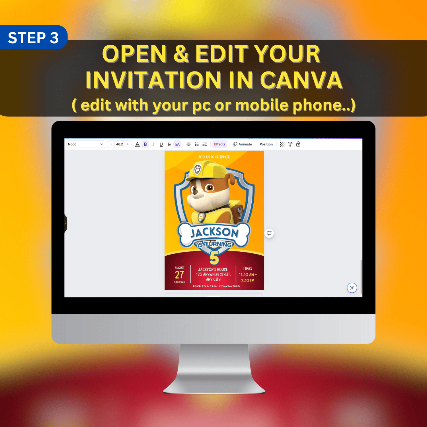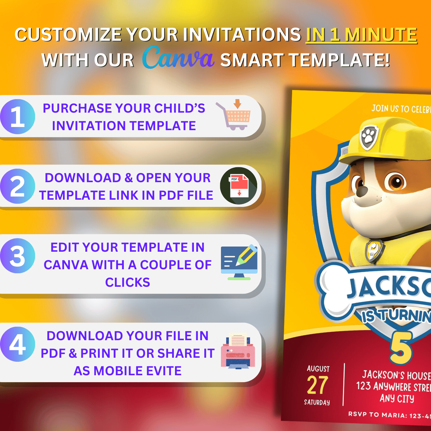 Rubble Birthday Invitation, Rubble Invitation, Rubble Birthday Party Themed Card, Mobile Digital Invitation, Kids Birthday Invitation 5x7