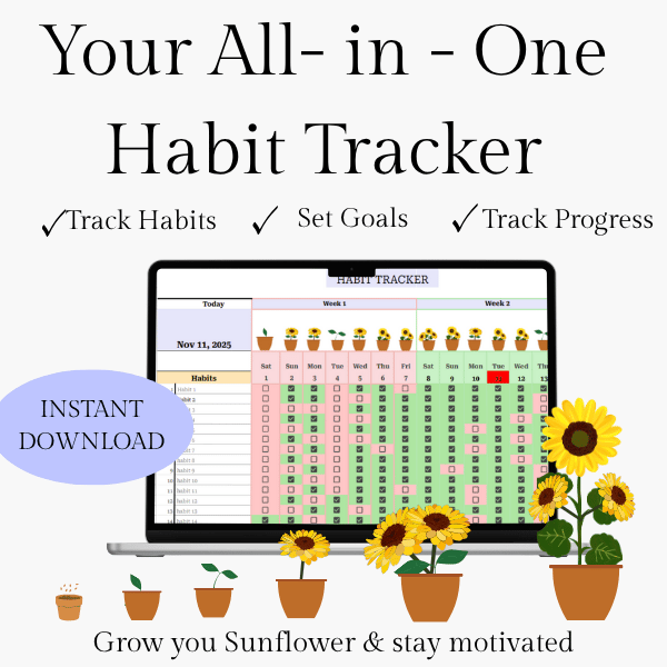 π‘ Instant Digital Download β Start tracking today and watch your habits bloom!