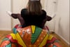 I then continue riding and bouncing, repeating the spitting on the rhino's head.