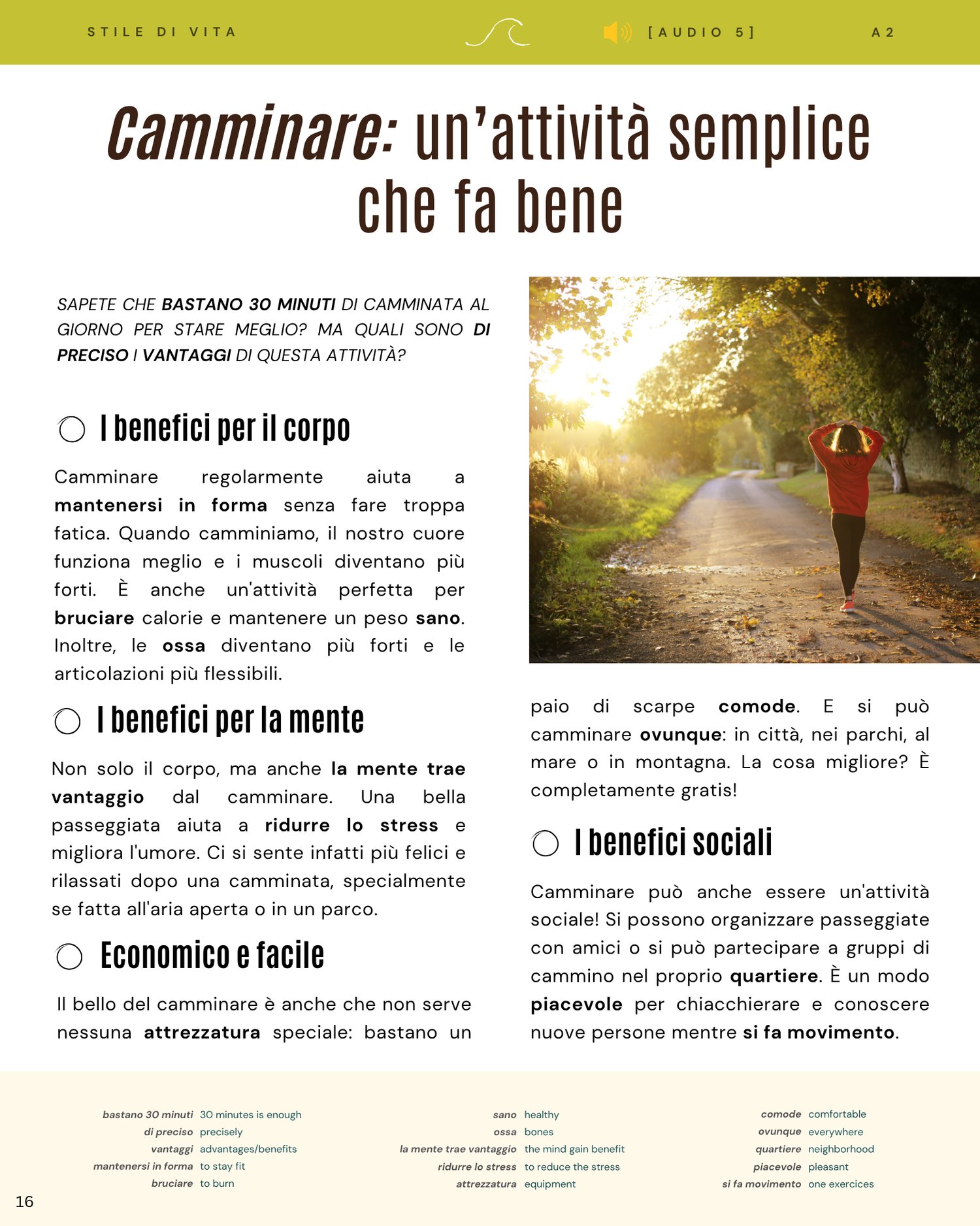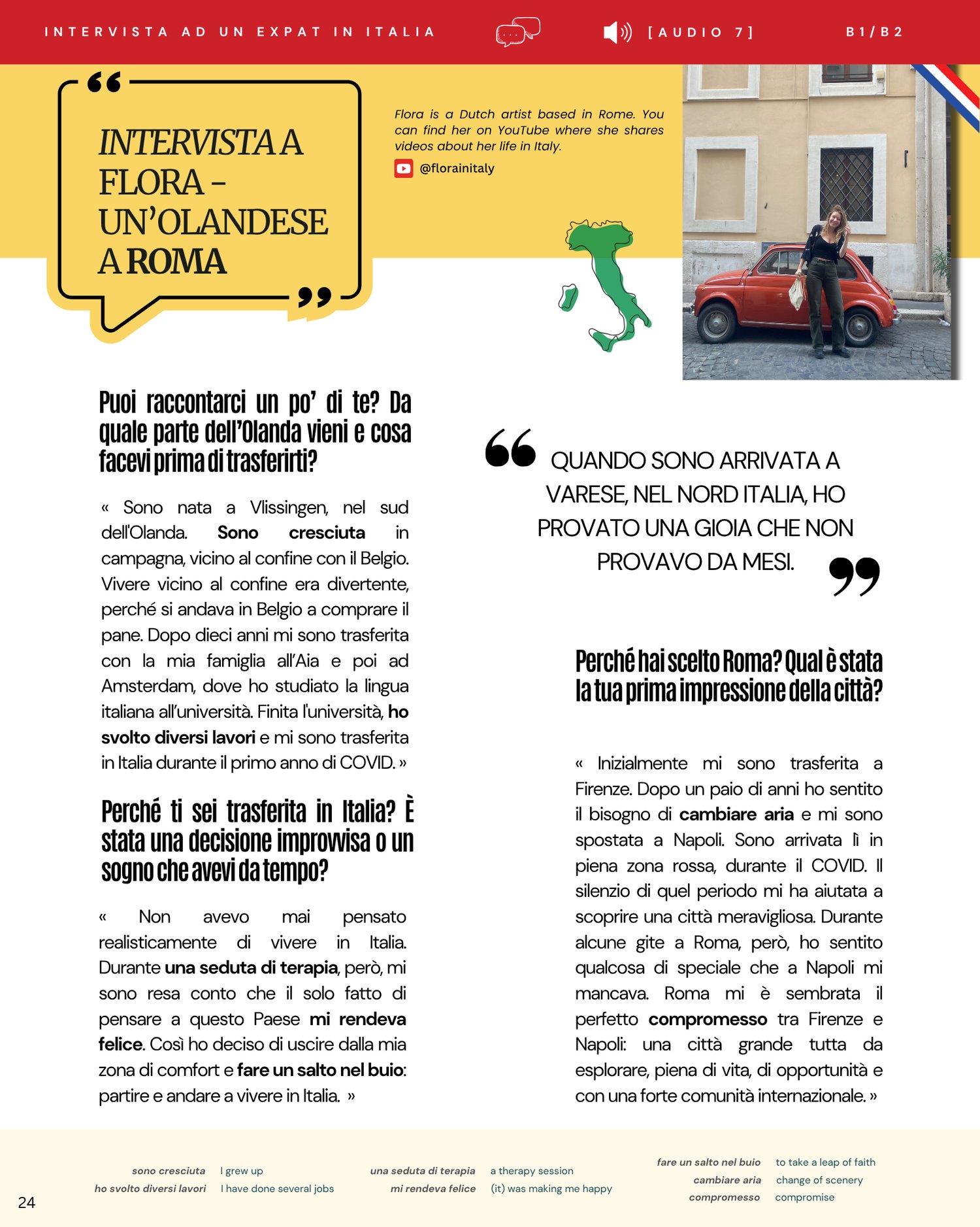 Piazzetta Italiana is a digital magazine for intermediate learners (A2+, B1, B2 CEFR) who are ready to go beyond the basics, but not quite fluent yet. Each issue helps you bridge the gap between textbook Italian and the Italian you’ll actually hear and use in real life.
