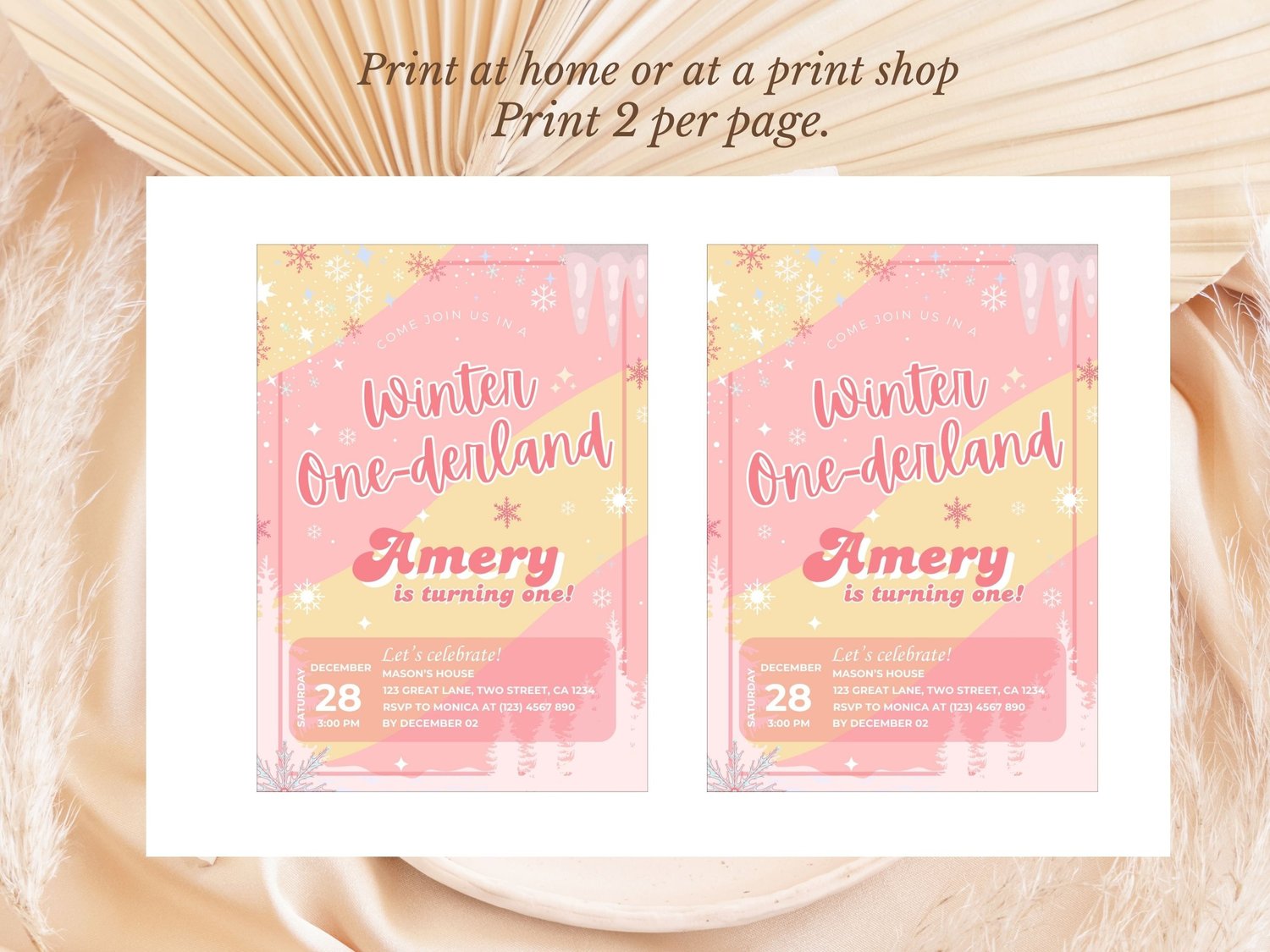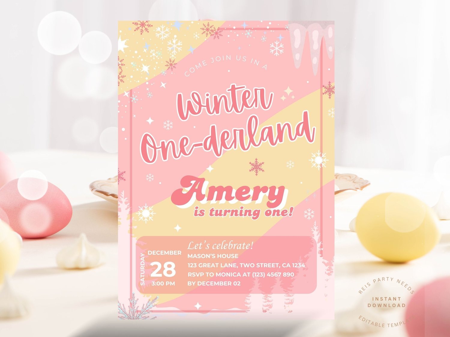 WINTER ONEderland Invitation Pink Girl 1st Birthday Invitation Instant Download Winter 1st Birthday Invitations Girl Winter Sweets Invite