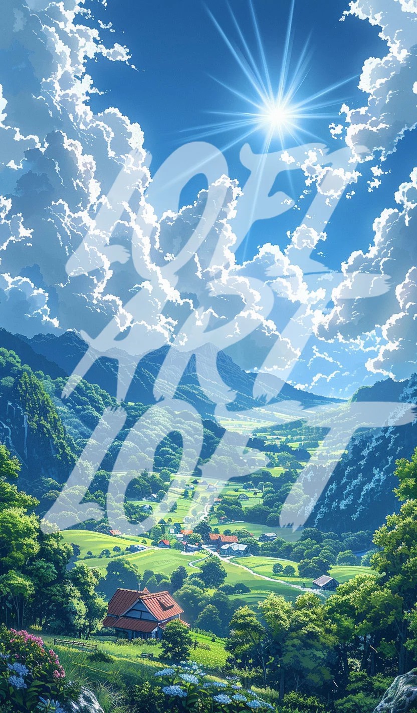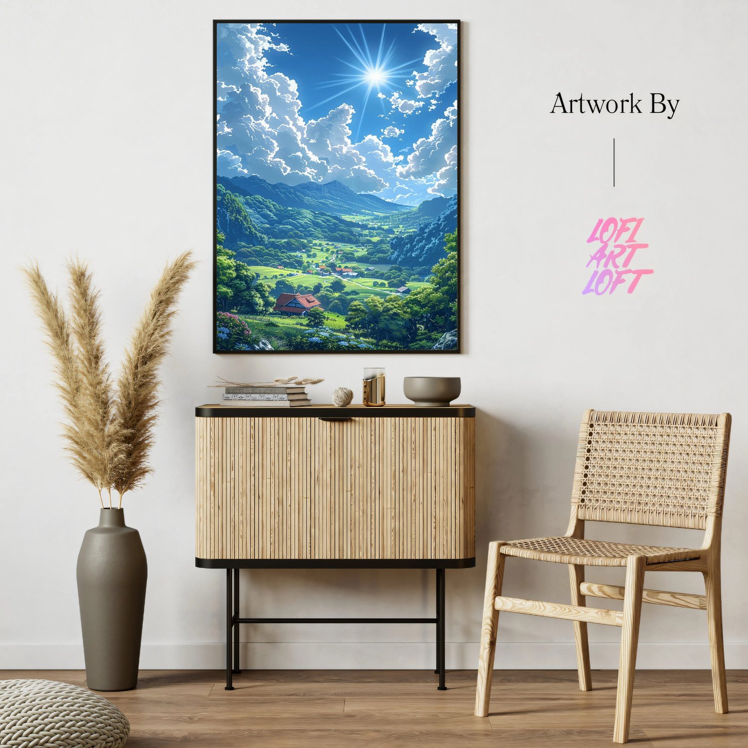 Sunny Valley - UHQ Digital Lofi Anime Art Print | #38