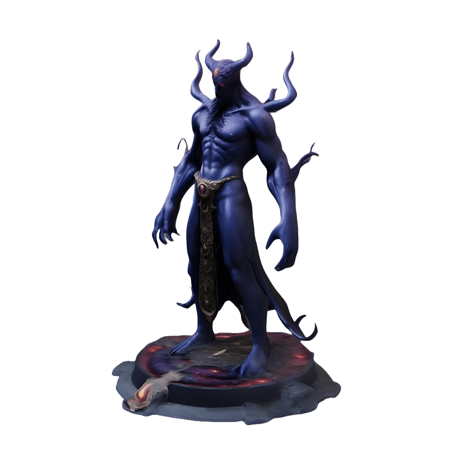 - Voidborne Entity: A sleek, humanoid demon figure with smooth, alien-like features and an aura of cosmic terror. Its twisted horns and dynamic base evoke pure otherworldly menace.