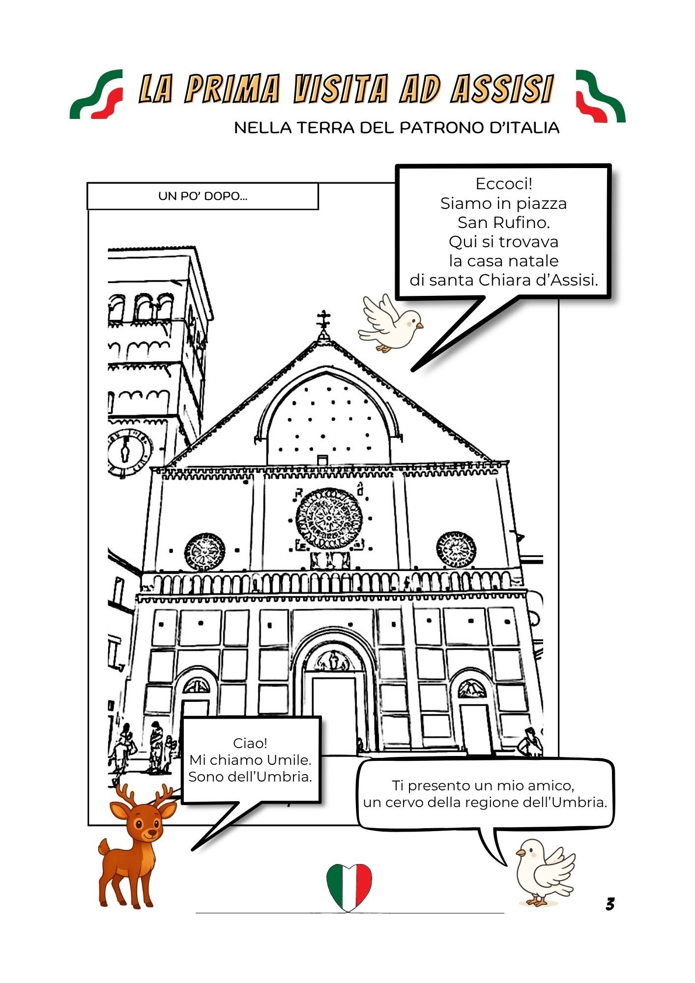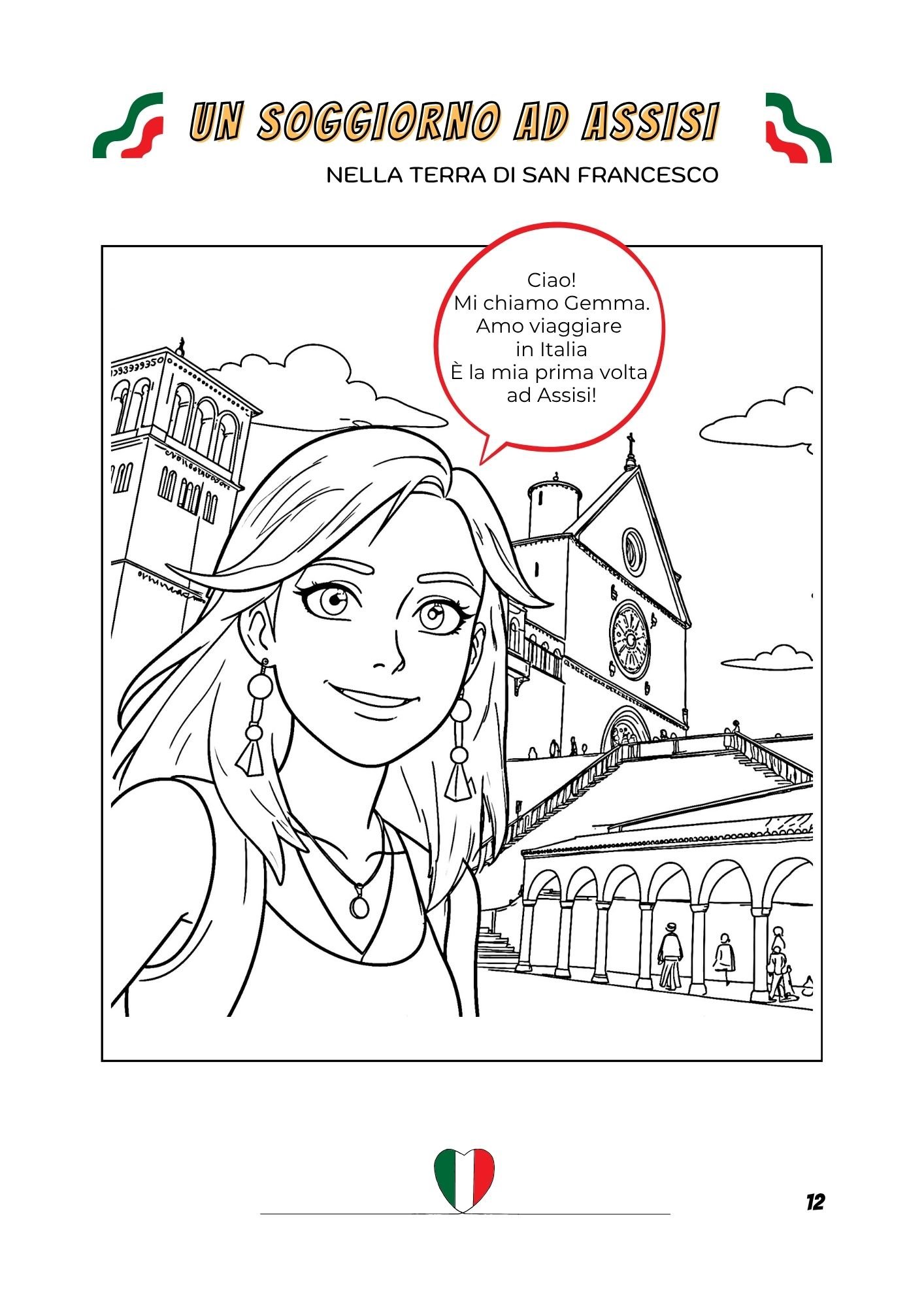 Un libro di attività e da colorare con immagini reali di Assisi.