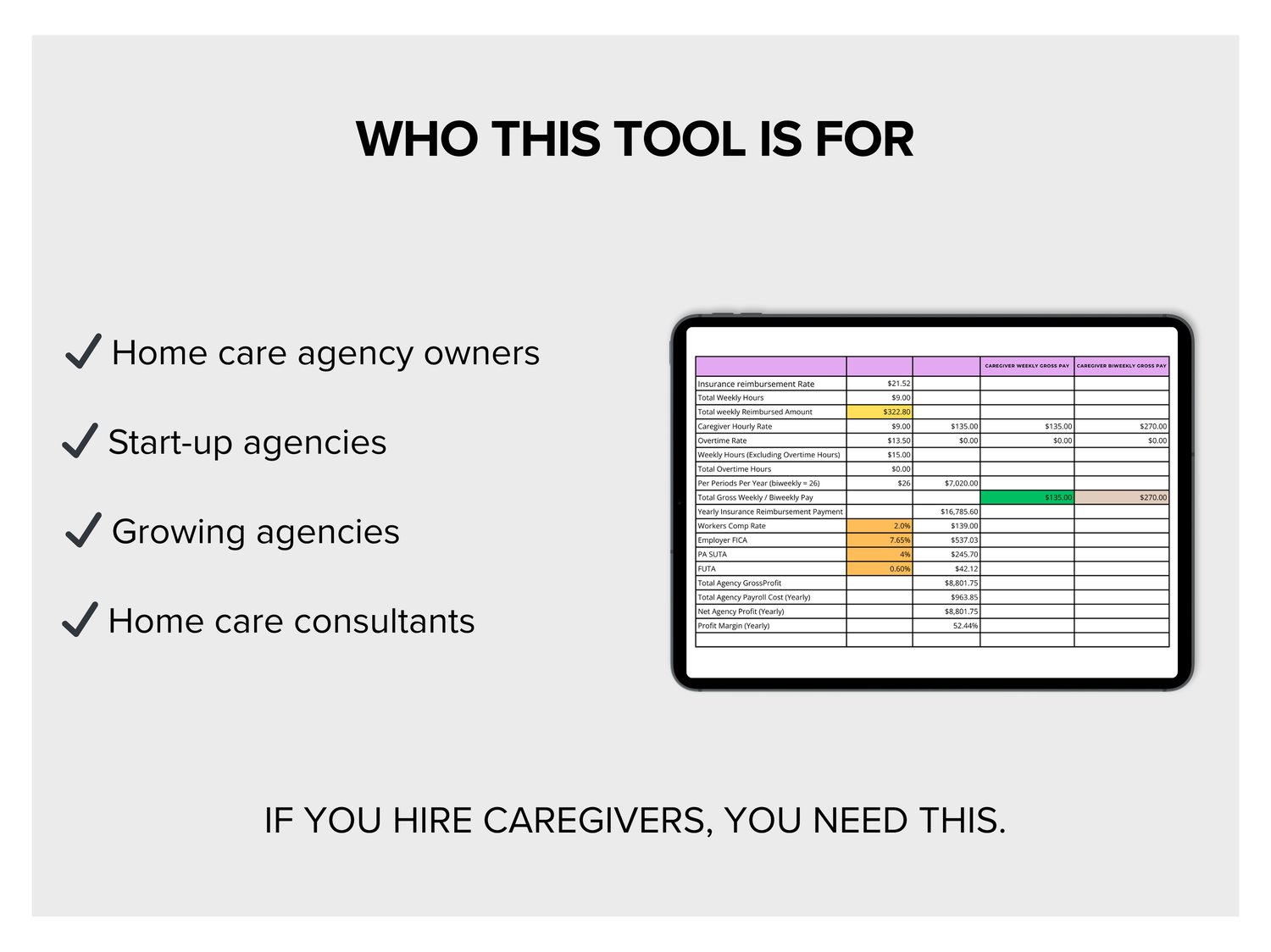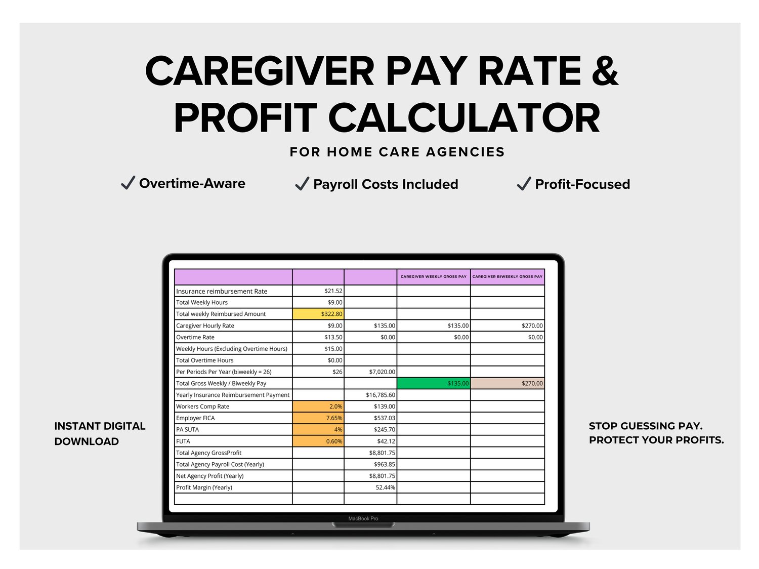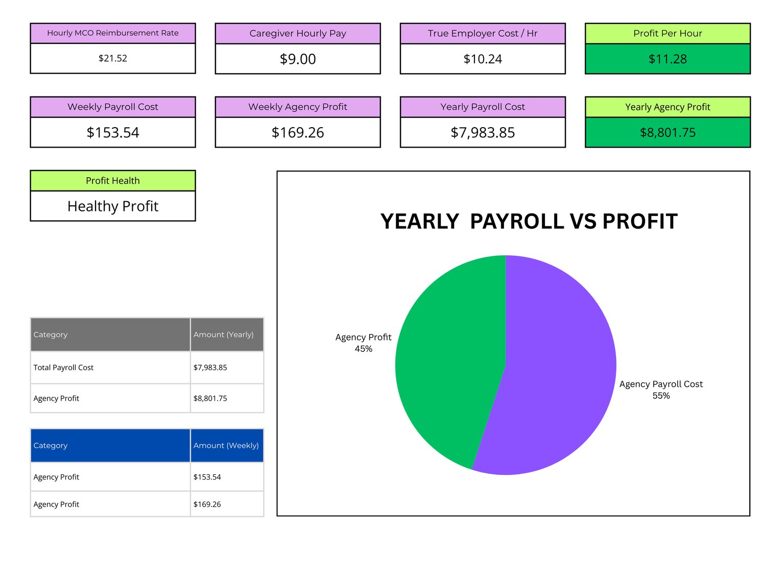 Caregiver Pay Rate and Profit Calculator