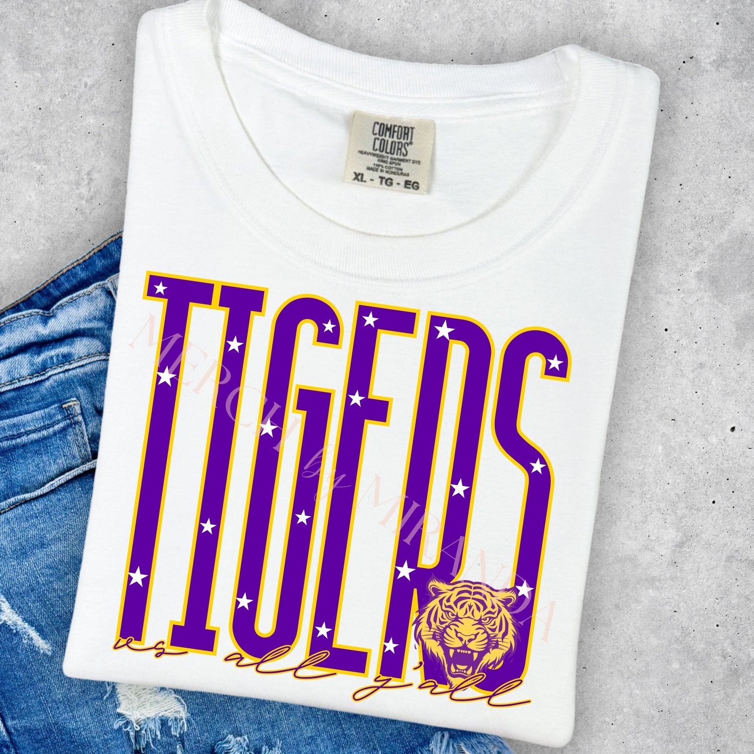 TIGERS vs all y'all - Digital Design - Purple - Yellow - LSU