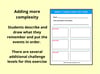 They begin with observation and memory, and become more complex. Some of the exercises also include options to challenge students.