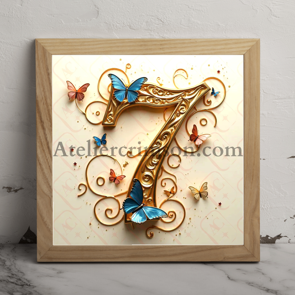 Number 7 golden luxury butterfly .Download Now this high quality AI-generated image, perfect for adding a touch of luruxy and creativity to any space.