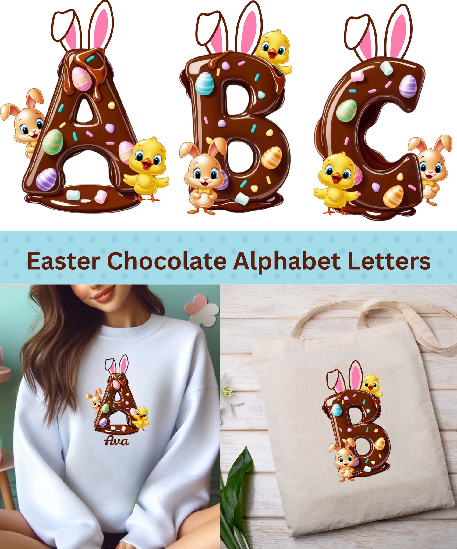 🍫 Easter Chocolate Alphabet Letters – Adorable dripping chocolate letters with bunny ears, chicks, and candy details.