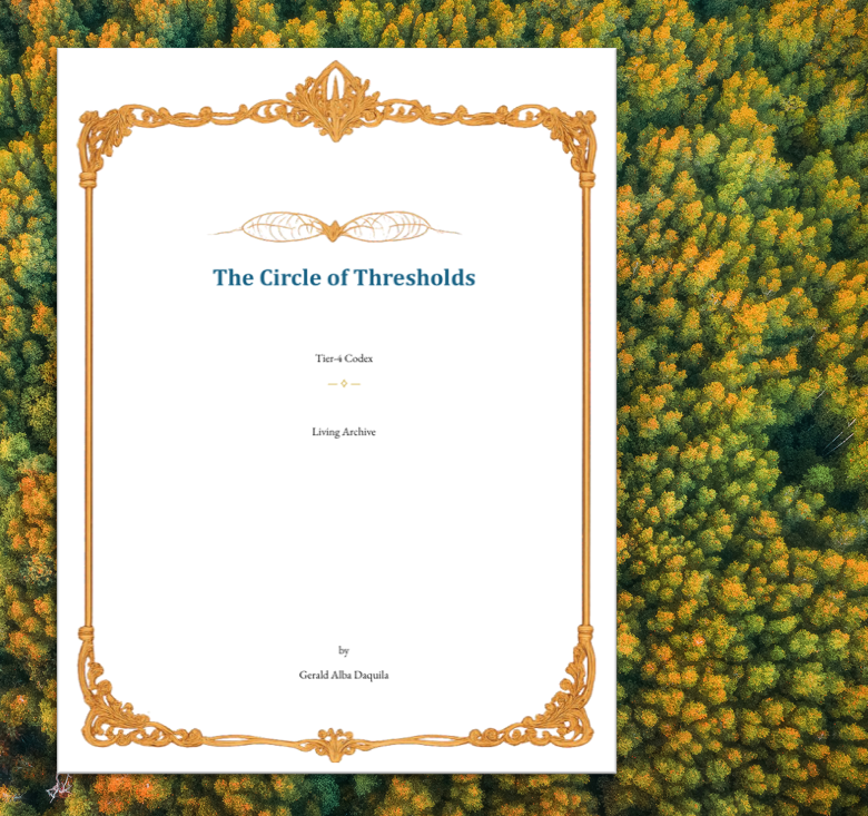The Circle of Thresholds represents a sacred space where timelines converge and soul contracts activate. This Tier 4 Codex serves as a blueprint for stewards overseeing crossings. It emphasizes the importance of coherence, the roles of guardians, and integration practices to ensure smooth transitions through these pivotal moments.