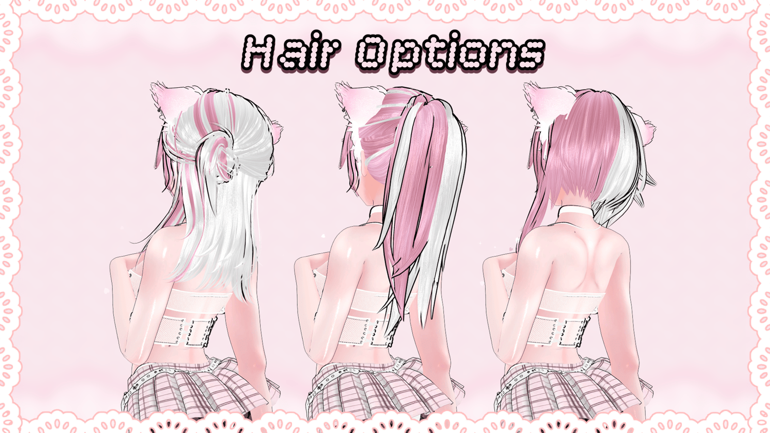 Hair: Long Bun, Pony Tail, Short, Straight bands, wavy bangs