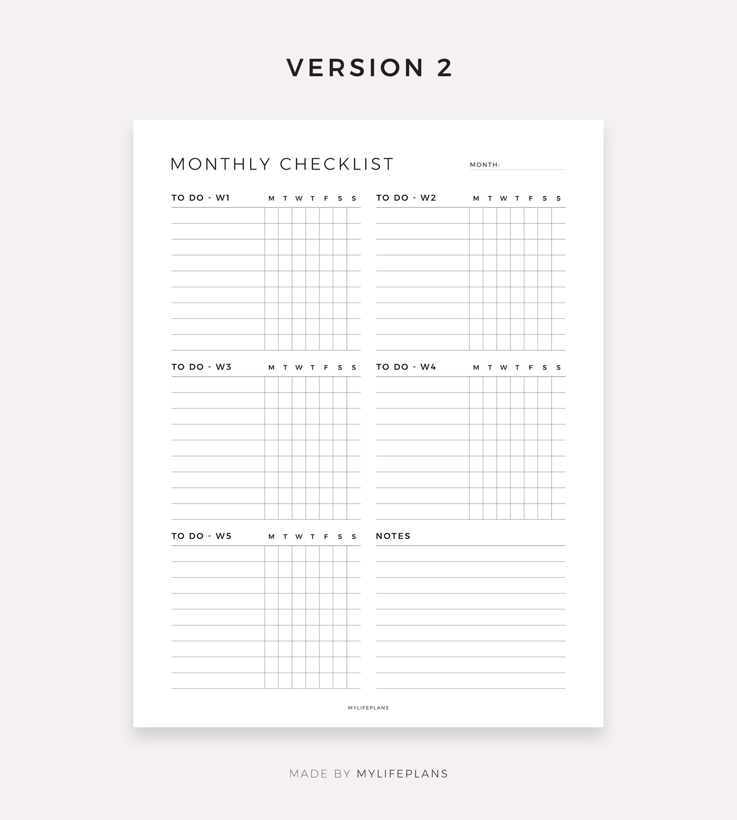 Monthly Checklist Digital Template for Goodnotes, Notability, Ipad