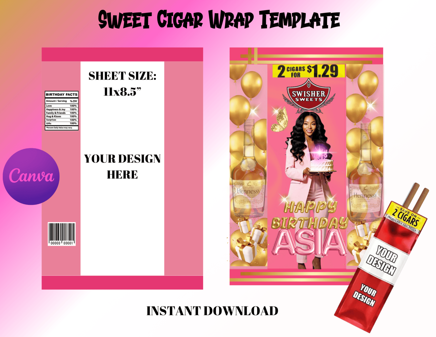 This is a digital download. You will receive a pdf that includes a sweet cigar wrapper template with editable design.