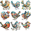 This digital product includes 60 images of Patchwork Birds in JPG format, 4096x4096 px size.