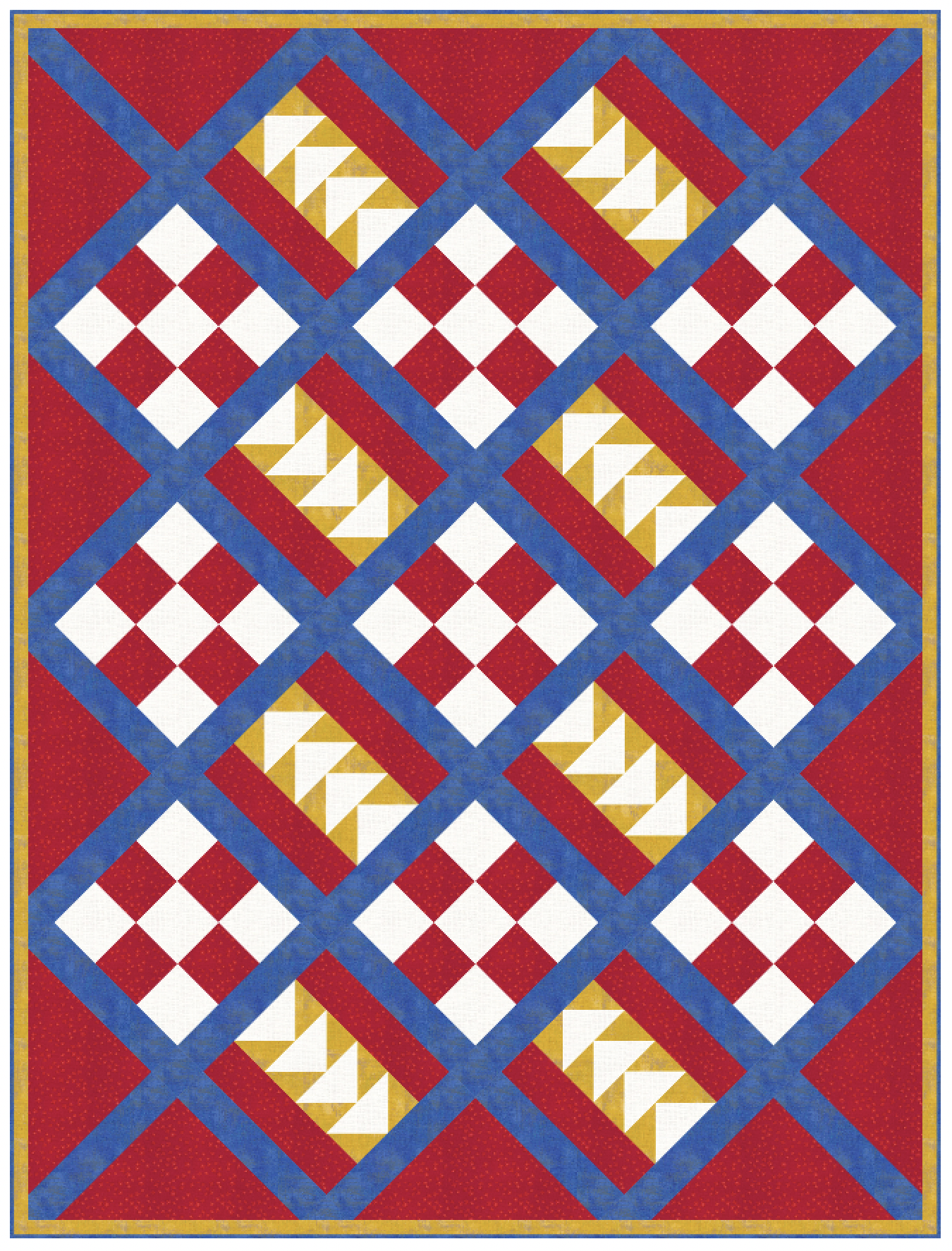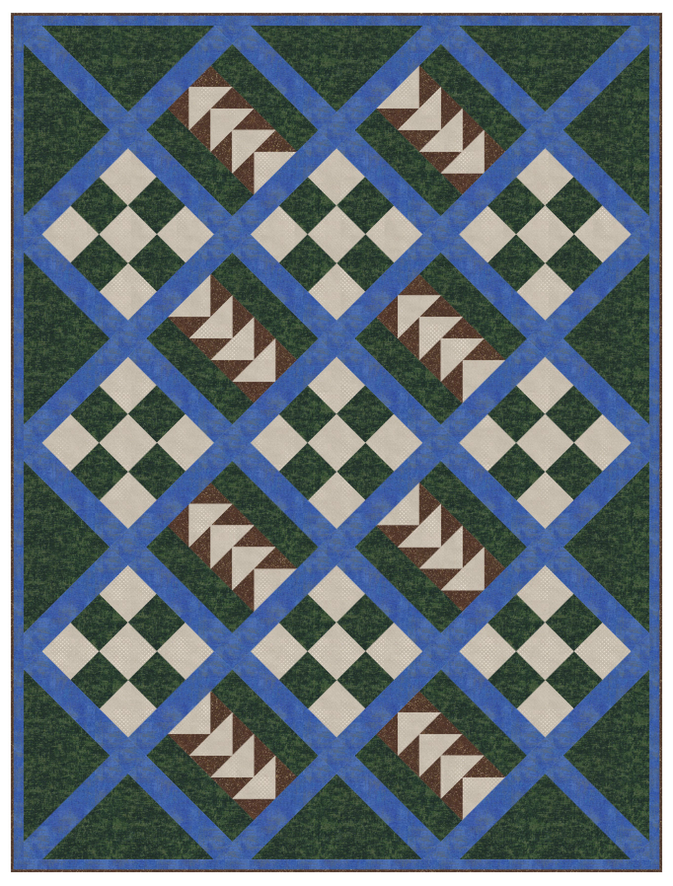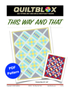 This Way and That is a quick and easy pieced project. This Way and That is constructed of Flying Geese, Nine Patch blocks, and is set on point with sashing. Perfect for fun novelty prints or any of your favorite batiks or designer prints (Tilda, Kaffe, or ?).