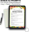 - 📝 Bonus AI Prompts Sheet: Keep customizing your journey with extra prompts for meals, workouts, stress relief, and longevity.