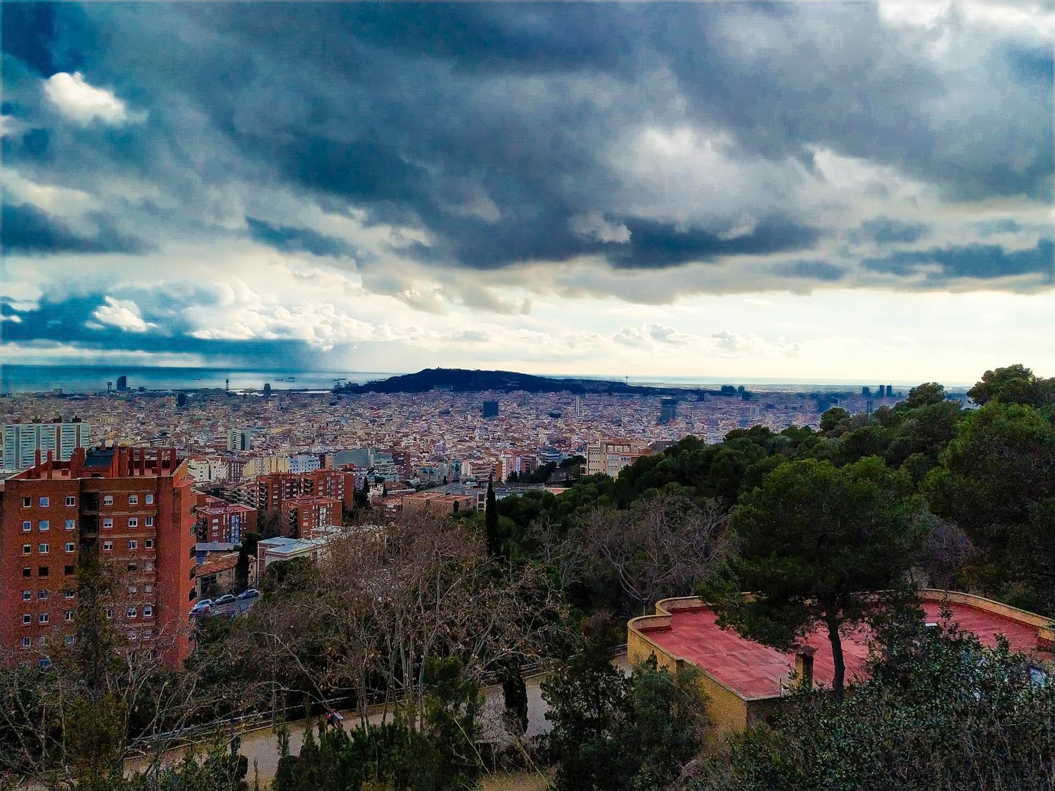 The city of Barcelona, seen from Mount Carmel, a stormy afternoon