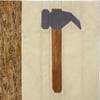 A foundation paper pieced quilt block pattern depicting a carpenter's hammer.