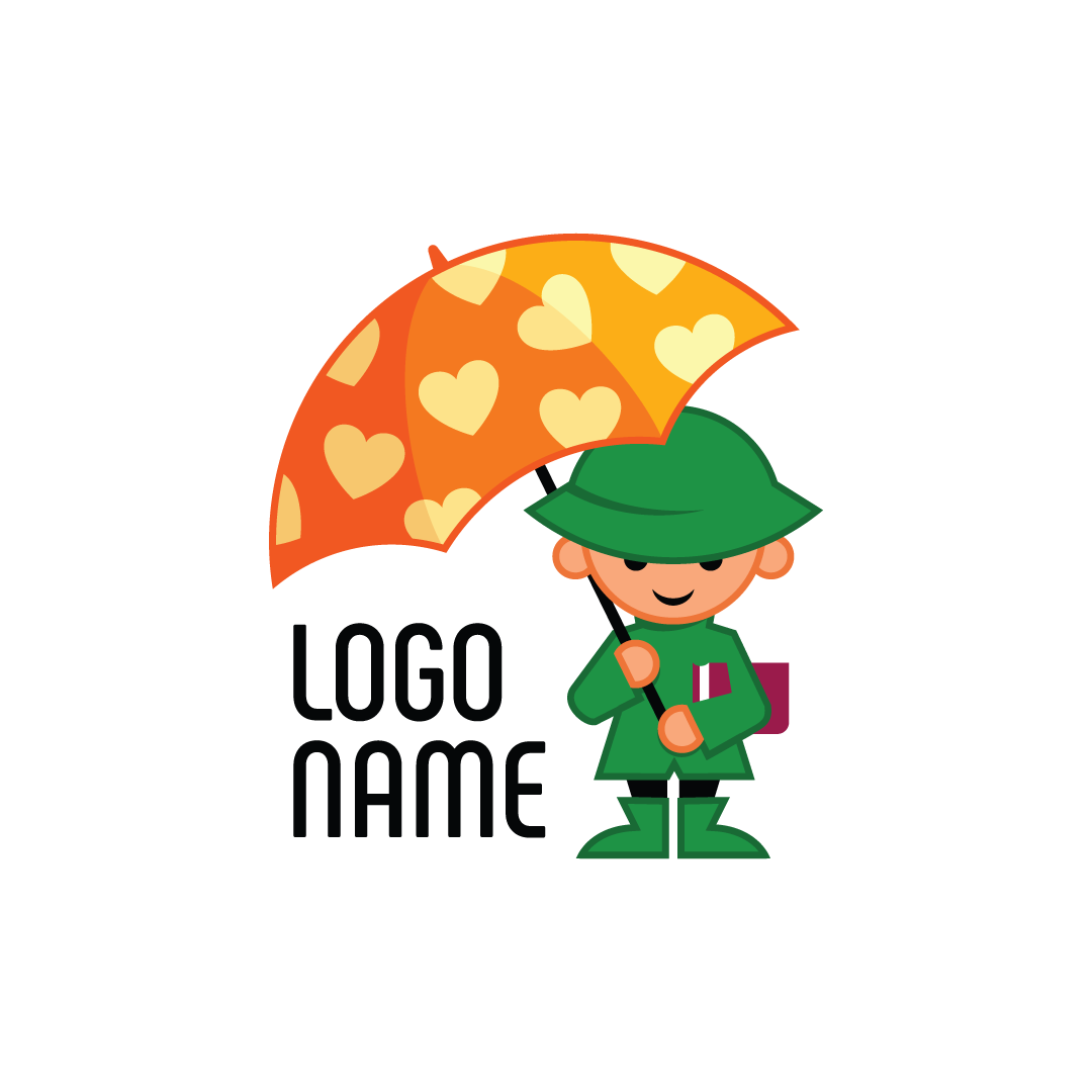 Children Holding Umbrella Fun Logo for sale. Modern, simple and unique ready made Children Holding Umbrella Fun Logo. This symbol is suitable for kindergarten, clothing label, playground, preschool, nursery, daycare, kids book club, bookstore and shopping mall. The design conveys cheers, fun, happy, joy, secured, safety and professional. The mark itself will looks nice as social media avatar and website or mobile icon. Source files are provided in vector PDF, EPS, AI and raster PNG.