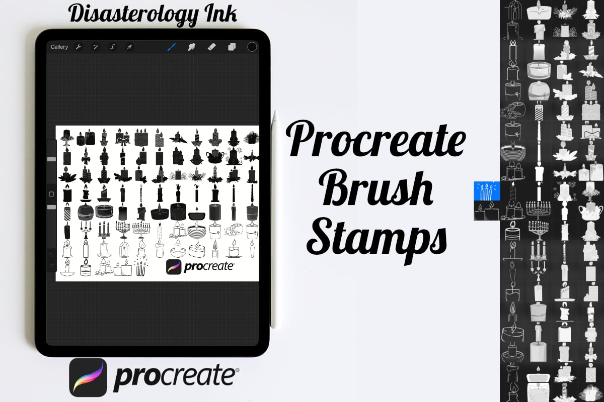 Procreate stamps save time when drawing, saving the effort of having to recreate the same thing for multiple designs and projects, save time on your design by purchasing these candle brush stamps so you can utilise that time on creating more beautiful art.