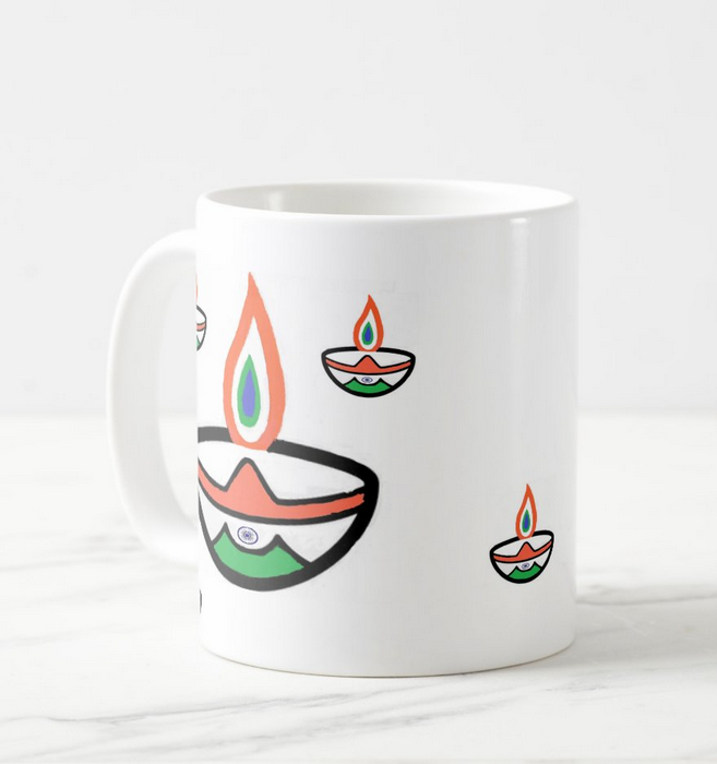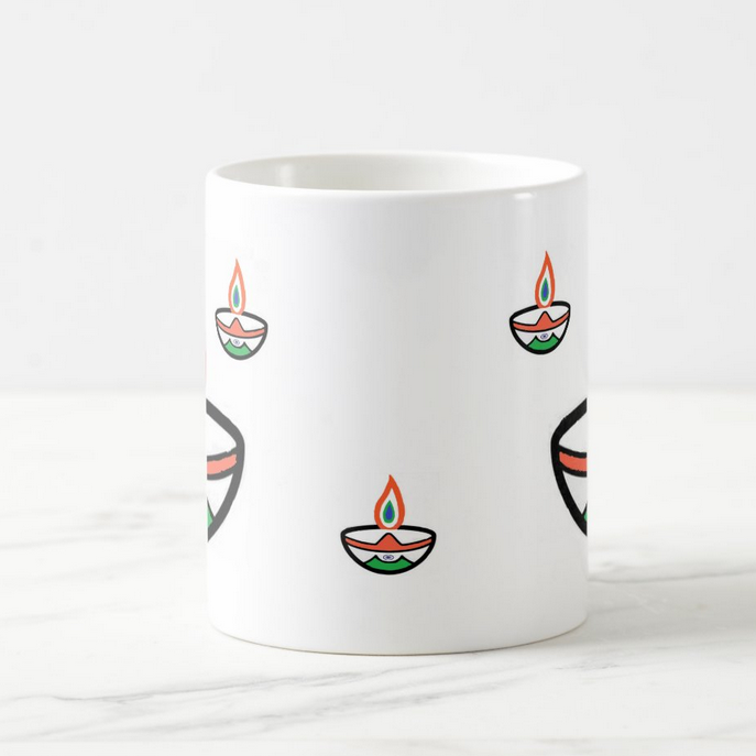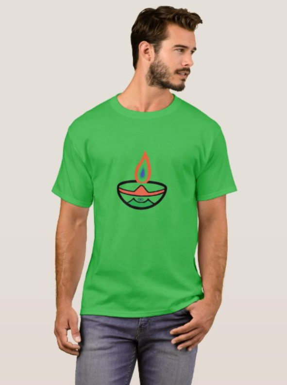 A Lamp/ Diya in tricolors with chakra in the center. The flames represent the tricolor too. A simple but yet classic design for all merchandise. BEST suitable for promotional Indian events , corporate gifting and personal use.