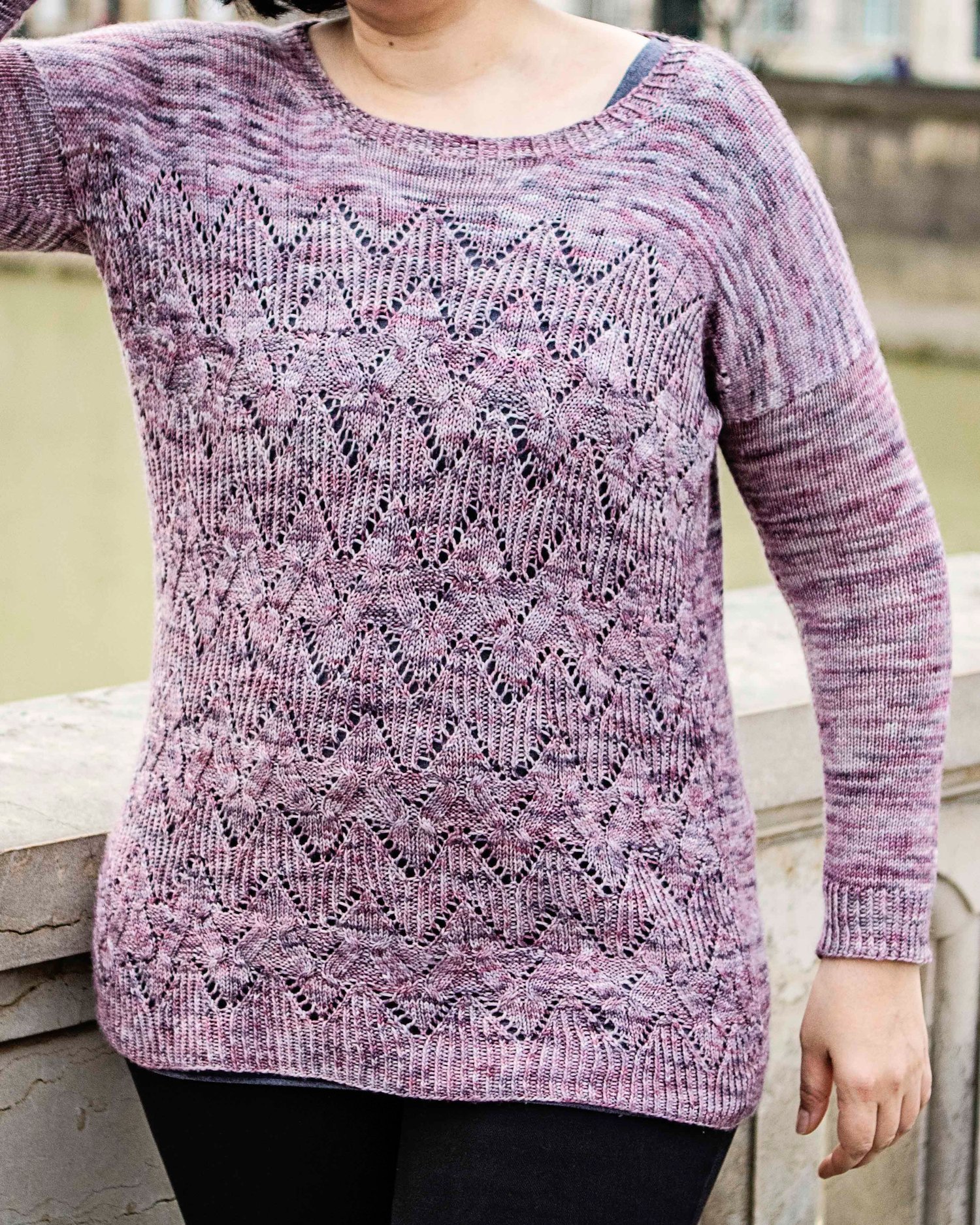 The stitch pattern on the front combines a few of my favourite knitting techniques - lace, cables and twisted stitches - I love how this all came together while still being a fun and engaging knit, and as usual I hope you will enjoy knitting it as much as I did.