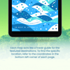 Maps act as a visual travel guide for exploring the highlighted destinations. To find the specific location, refer to the coordinates in the bottom left corner of each page.