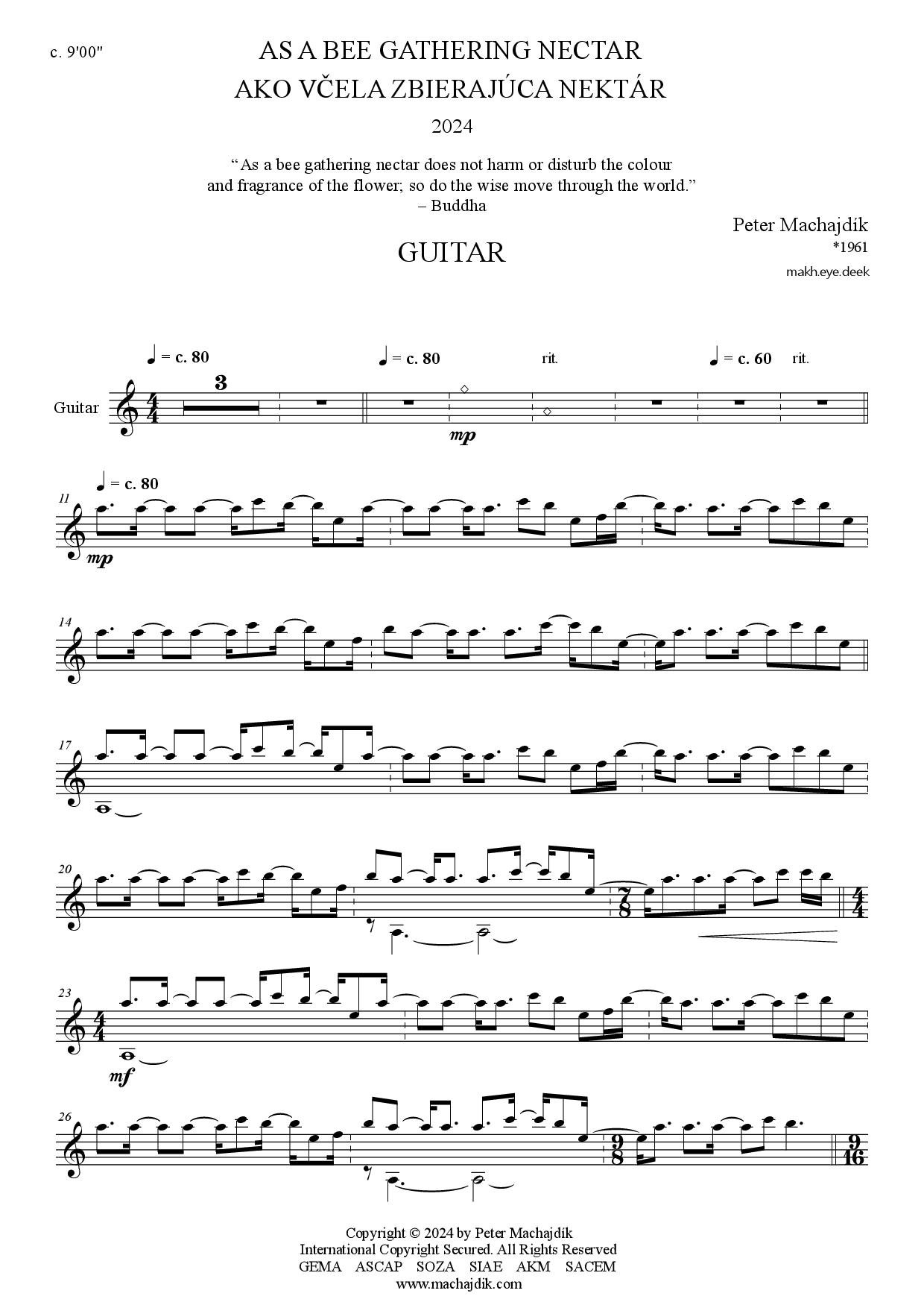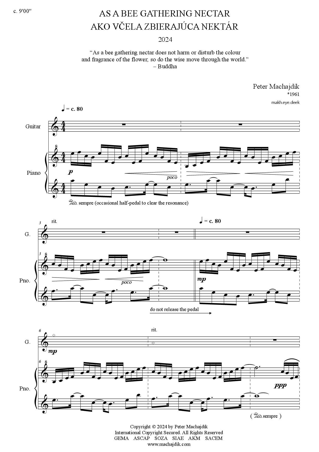 Peter Machajdík: AS A BEE GATHERING NECTAR for guitar and piano (Digital Sheet Music) [score and parts]