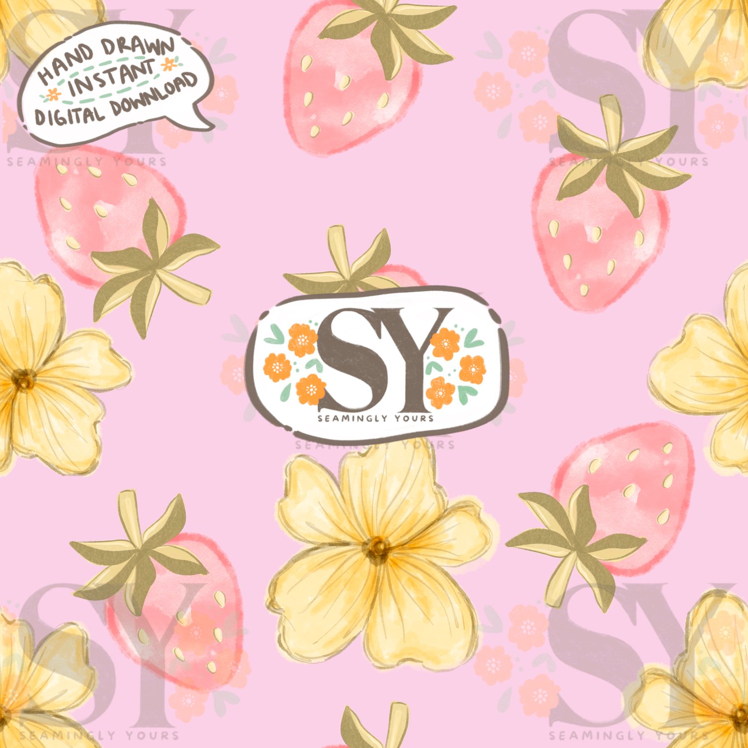 Watercolor Strawberries Floral | Hand-drawn Seamless Pattern | Digital Download for Crafts & Sublimation | Commercial Use for Small Business