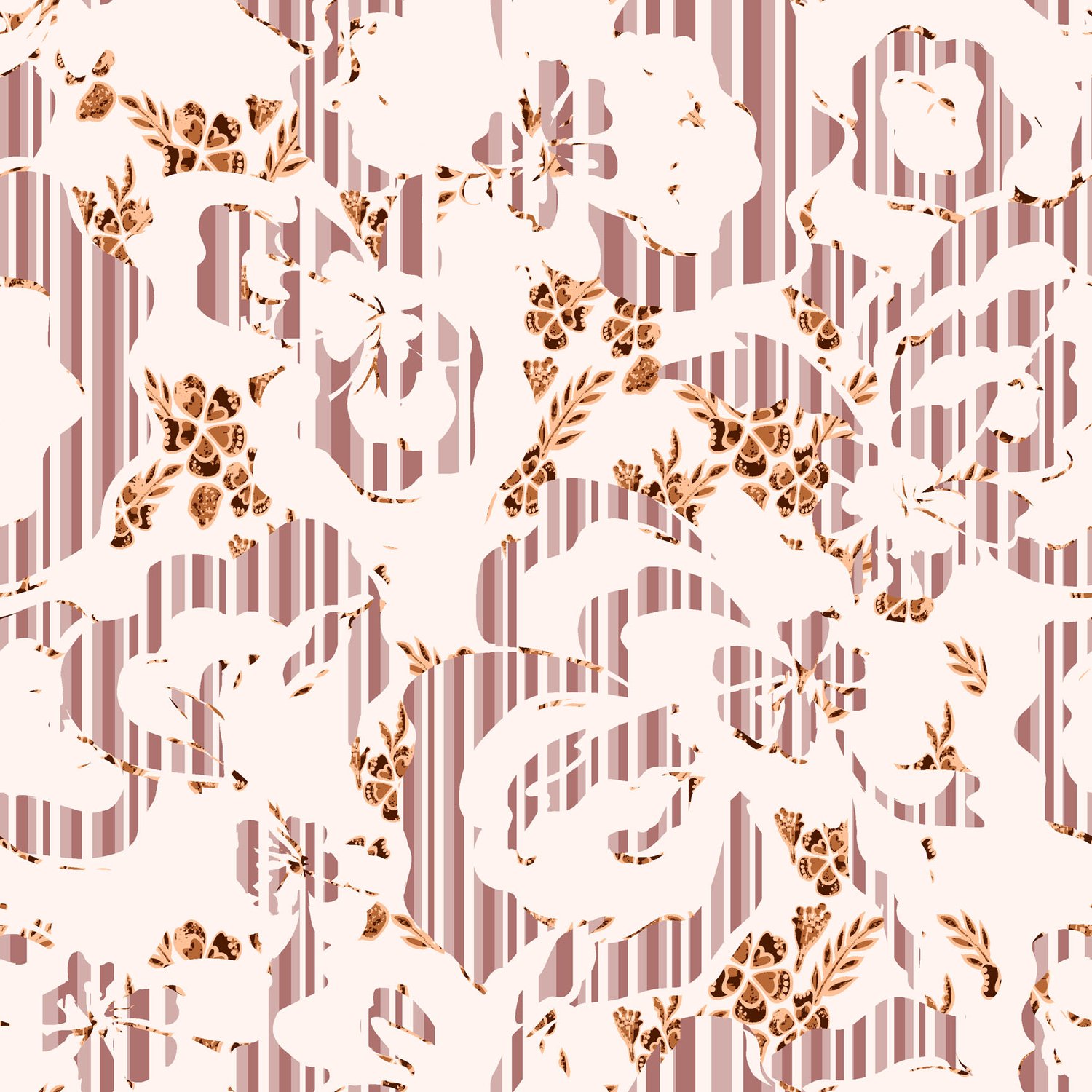 Elegant floral silhouettes on a classic striped background with earthy accents.