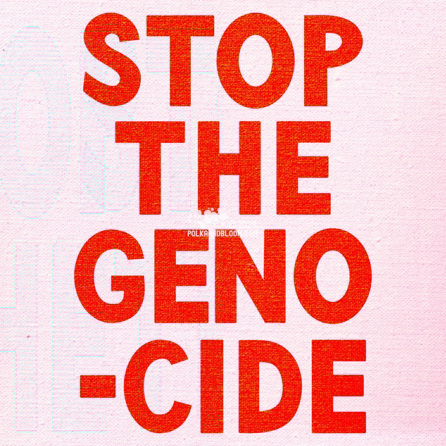 - two ready to print 'stop the genocide' signs, one in red, the other in black