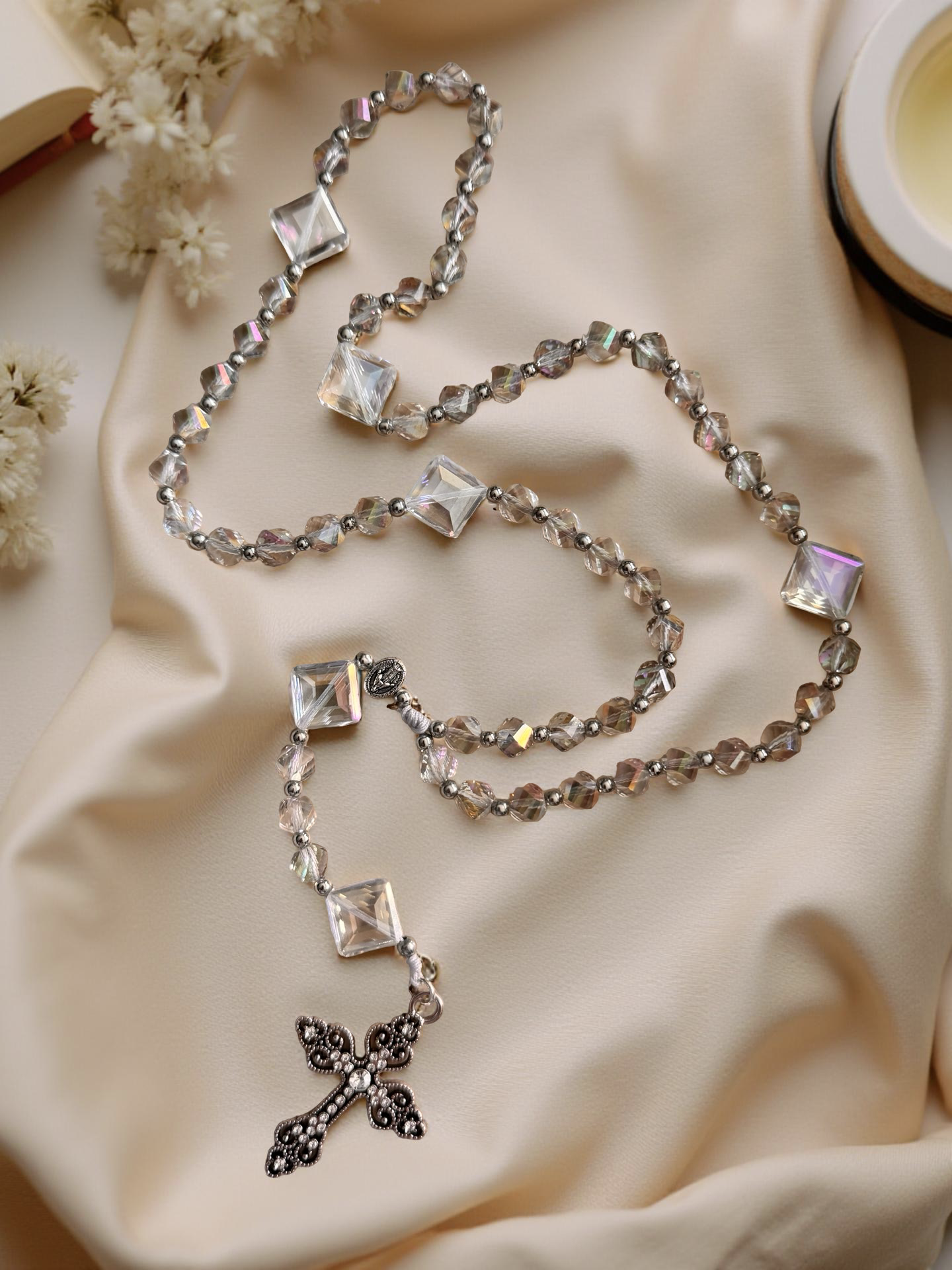 Premium Crystal Rosary Beads | Clear Glass Catholic Prayer Rosary
