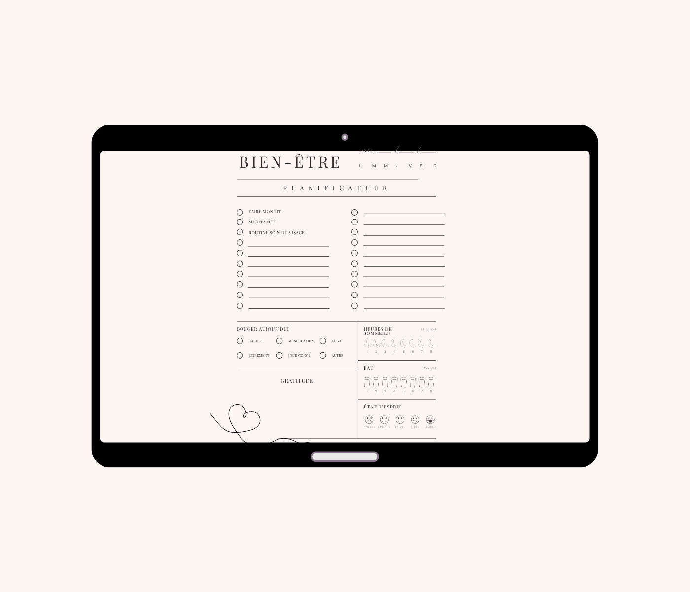 đ€ïž 1 page hebdo axĂ©e bien-ĂȘtre mental et physique
