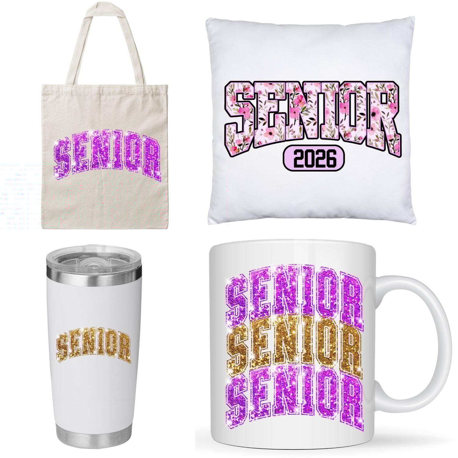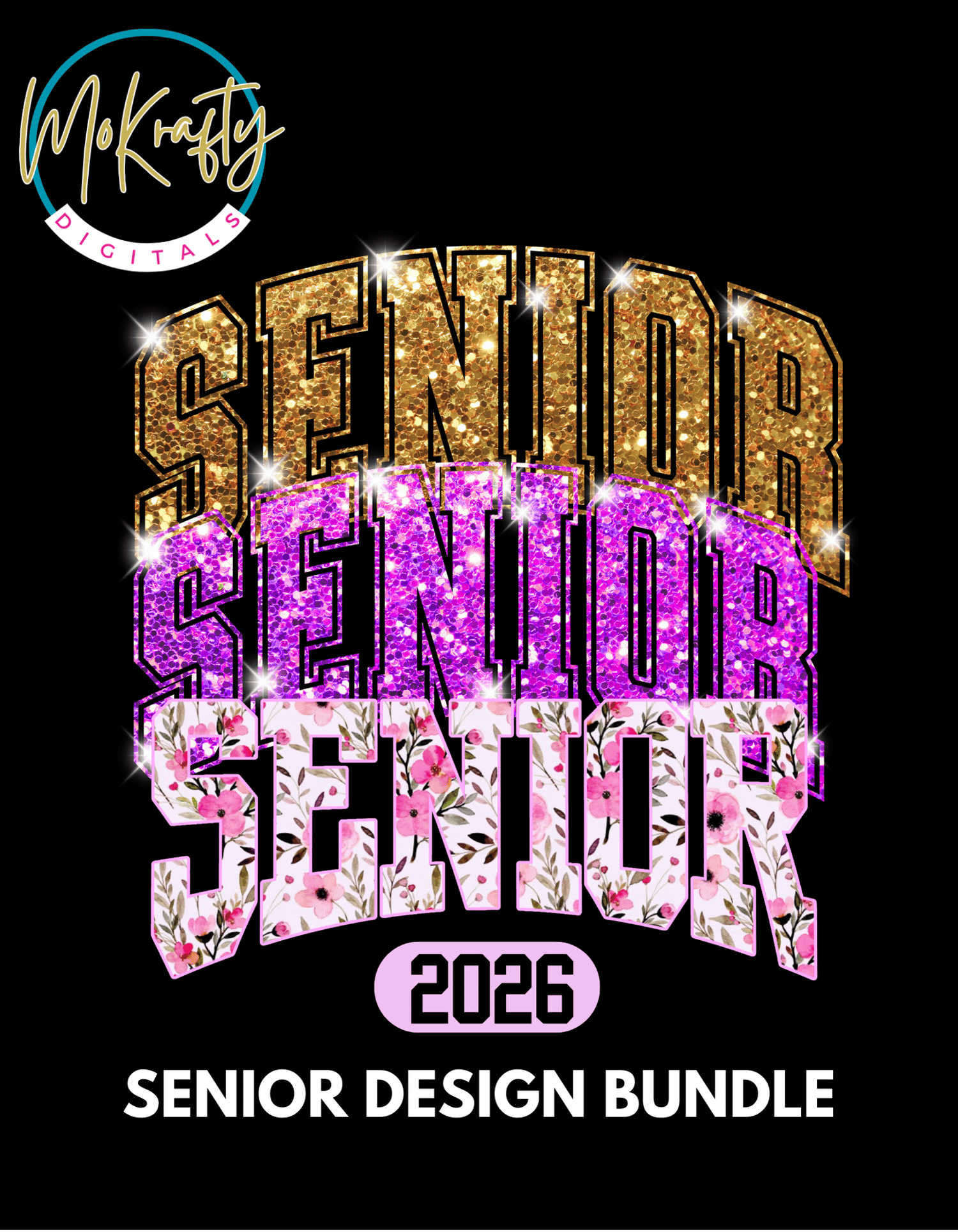 Senior Year PNG Bundle – Glitter & BONUS Floral Class of 2026 Design
