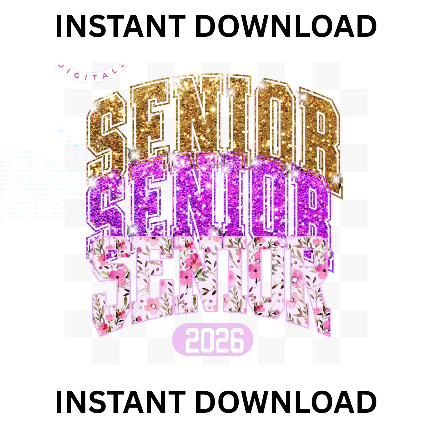 🎓 Senior Year PNG Bundle – Glitter & BONUS Floral Class of 2026 Design