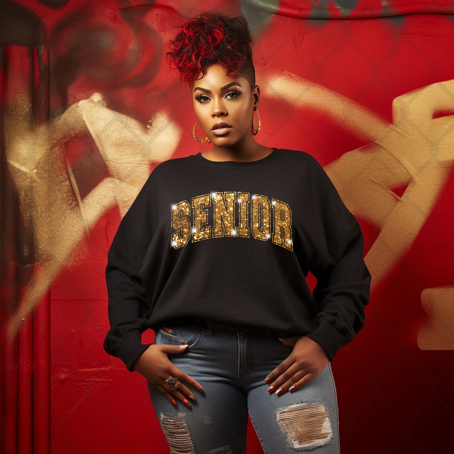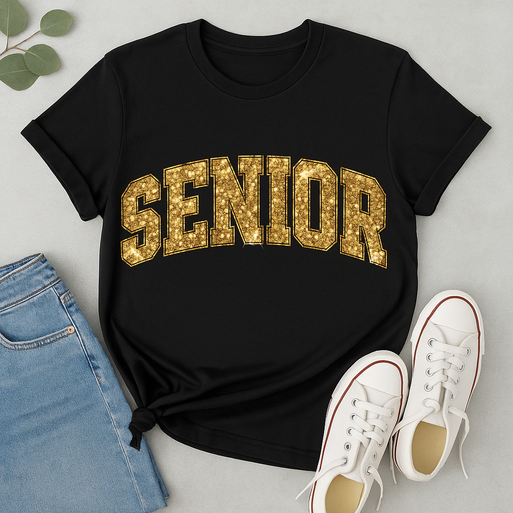 - Gold Glitter “SENIOR” PNG – luxury glam, perfect for stoles & tees