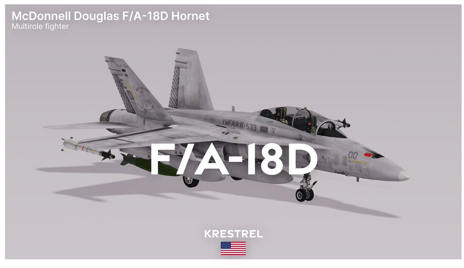 Get your players battle-ready with the F/A-18D. This versatile, carrier-capable fighter is designed for precision and adaptability, making it ideal for air-to-air and air-to-ground combat scenarios in your game.