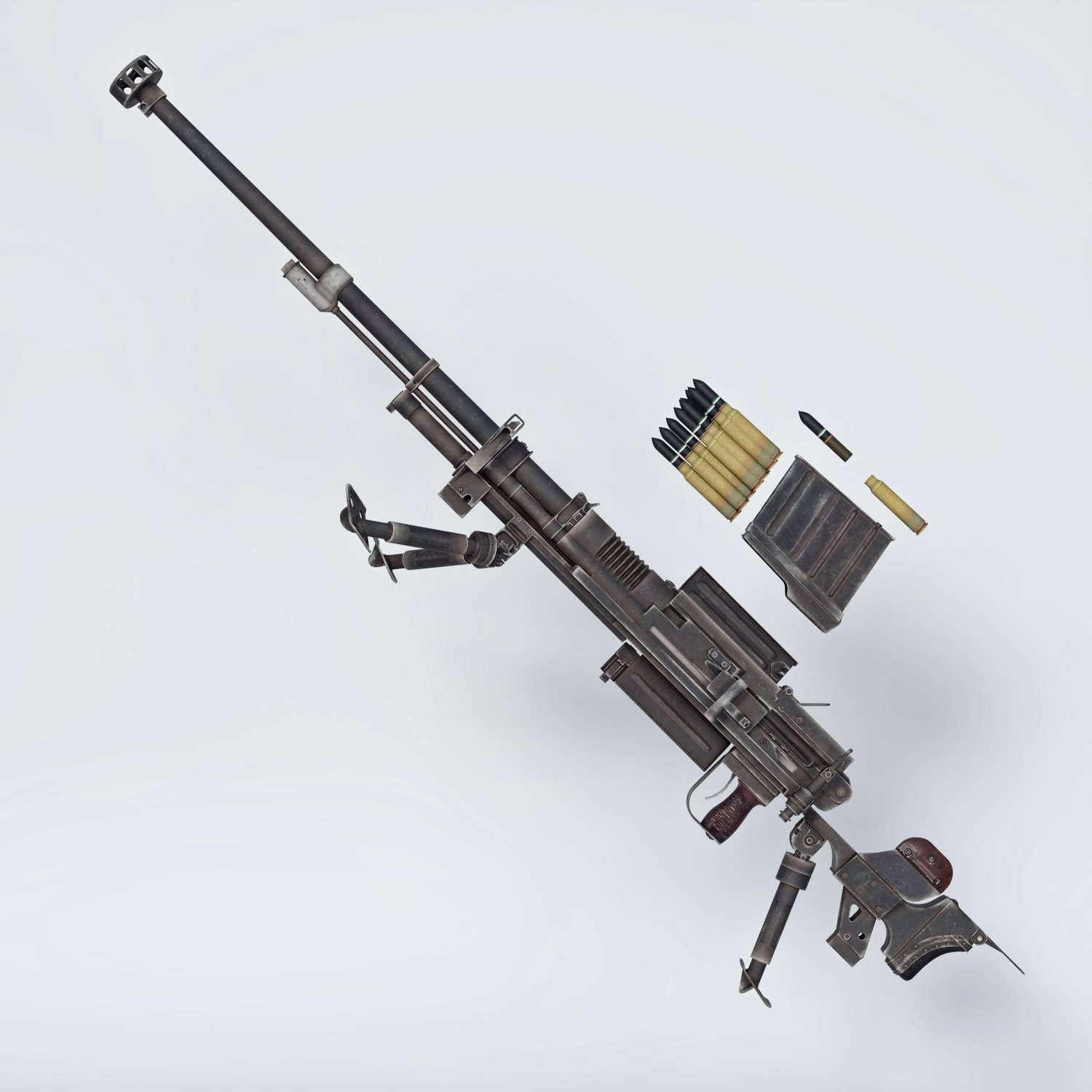 A HUGE 20mm Japanese anti-tank rifle, developed in the 30s and used in the first half of WW2 in the pacific theater. Huge, heavy and very cool looking. Rigged and converted for use with DAZ. Very powerful for armored targets, it became useless for a good WW2 tank, but come on, it still looks amazing. Trigger, mag, bolt, etc also rigged for more realistic pictures. Includes a foldable bipod, mag and bullets in mag for various porpoises and pictures. Also includes a separated bullet (bullet and shell) for more cooler pictures.