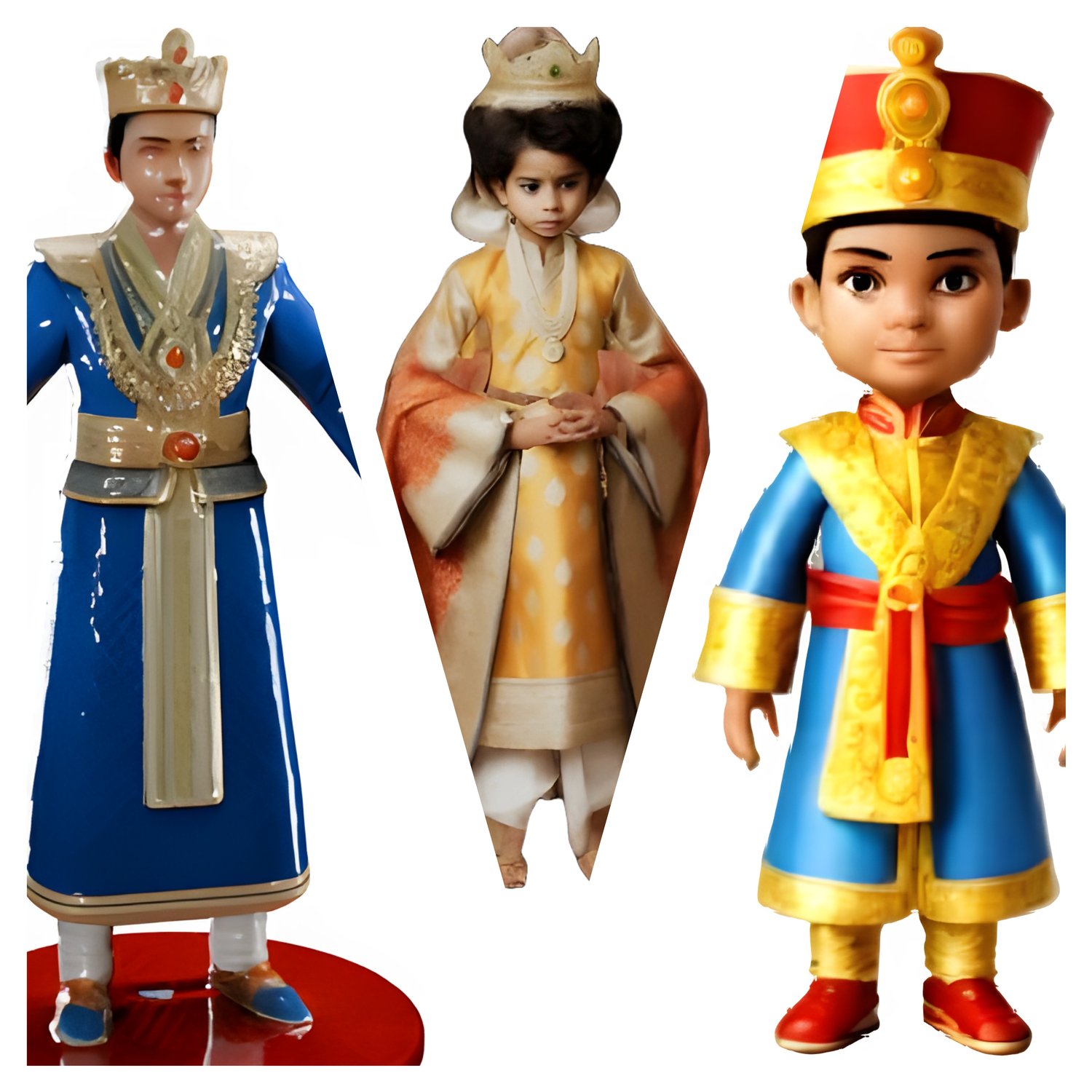 Hey there, fellow makers! These charming prince figurines are designed with incredible attention to detail, perfect for both collectors and creative projects. Each figurine features intricate Asian-inspired royal attire with flowing robes, detailed crowns, and rich color combinations of blue, gold, and red.