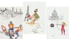 Tirage d'Art au format A5 sur papier Premium des aquarelles et dessins de MAGIL des lieux de compétitions liés au Patrimoine.