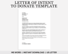 Letter of Intent to Donate Template, Donation Letter Template, Letter of Interest, Support Letter, Sponsorship Letter, Fundraiser Template