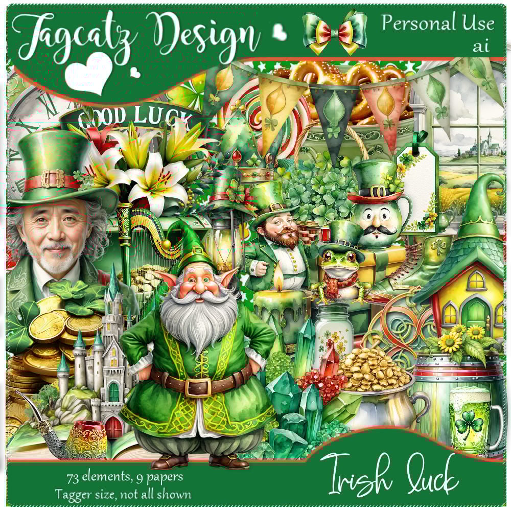 The luck of the Irish comes your way with lots of leprechauns, green beer, music and of course gold and jewels! 73 unique elements and 9 matching papers. AI generated. Tagger size. Personal use only. Not all shown.