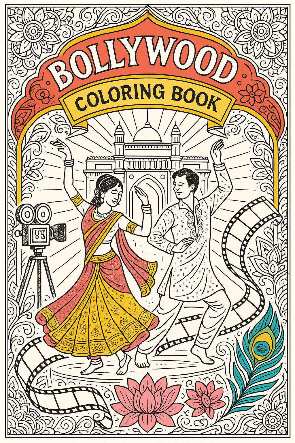 Bollywood, 111 designs, coloring ebook, digital printable product, instantly download