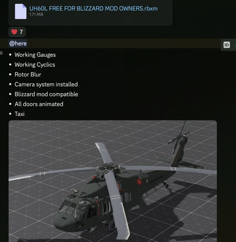 - comes with pre-scripted UH60L, UH-1Y, AH-6 & AH-64