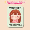 Este recurso educativo imprimible incluye 16 tarjetas ilustradas con un diseño kawaii, pensadas para que los niños y niñas aprendan a reconocer, expresar y gestionar sus emociones, mientras refuerzan vocabulario en dos idiomas.
